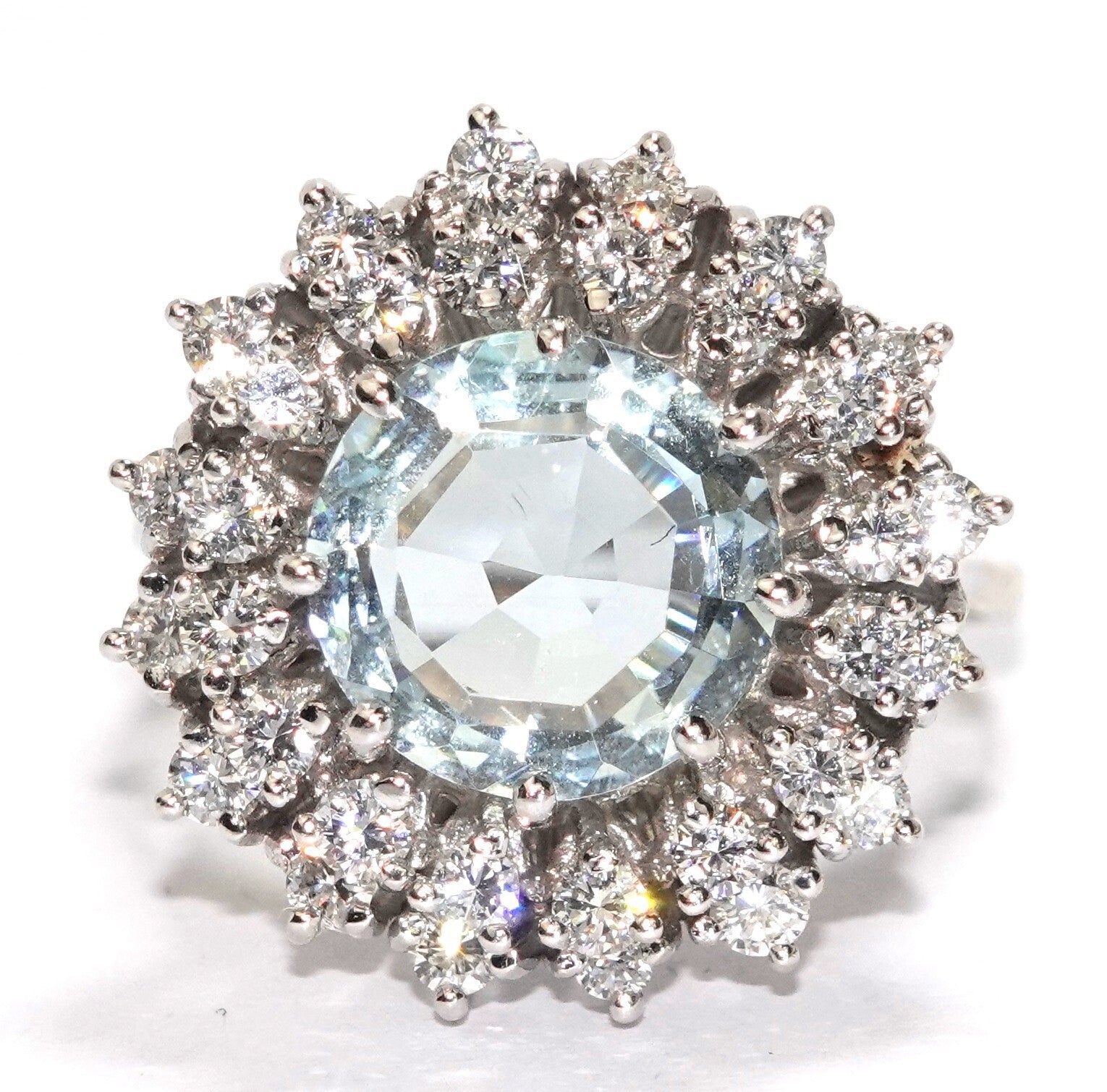 Ring Weißgold Aquamarin 2,50 ct. Diamant 1,12 ct. 585/14K Gr.60/19,1 mm änderbar