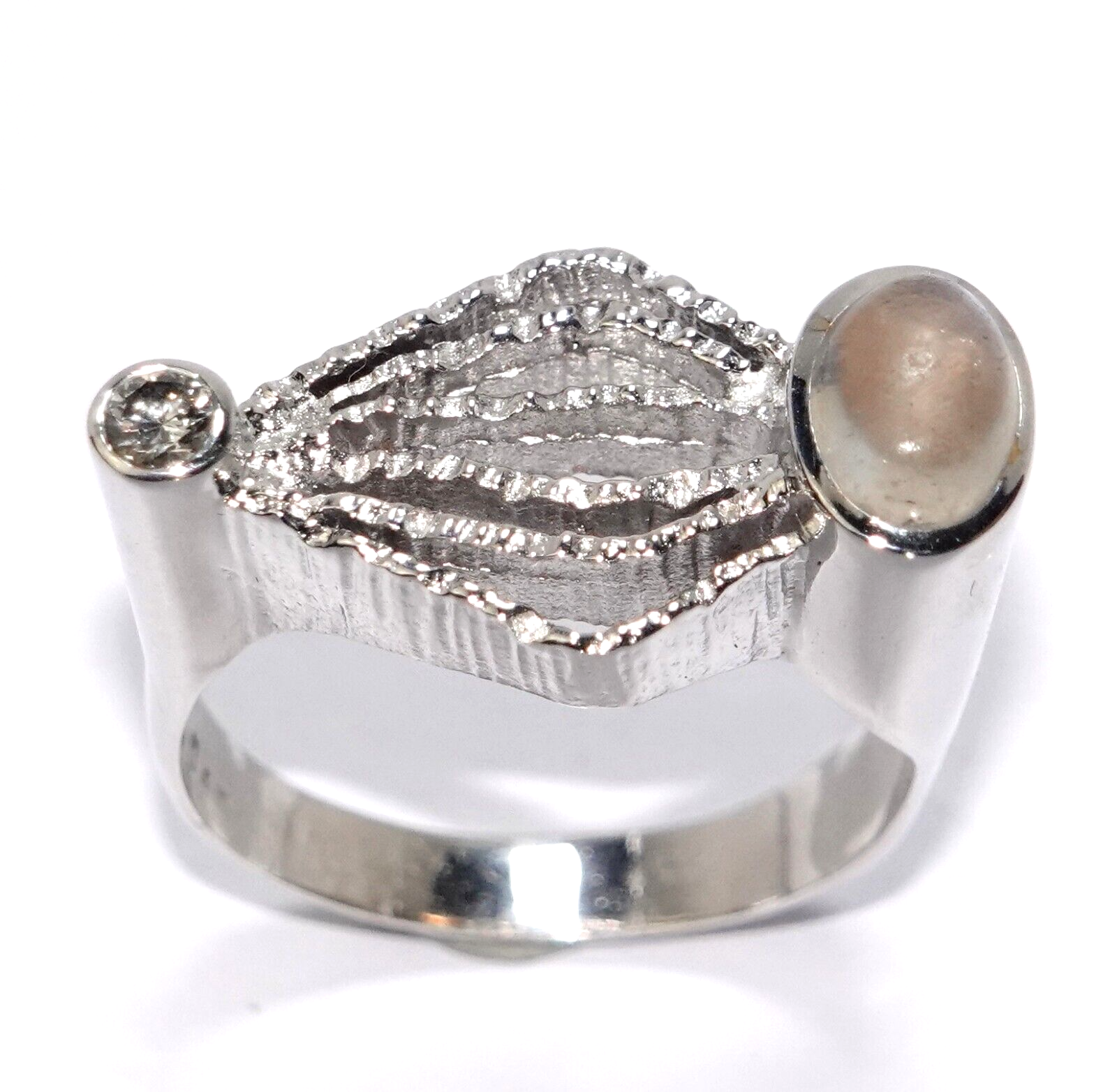 Ring Gold Mondstein 0,85ct. Diamant 0,10 ct. 585/14K 8,4g Gr.59/18,8mm