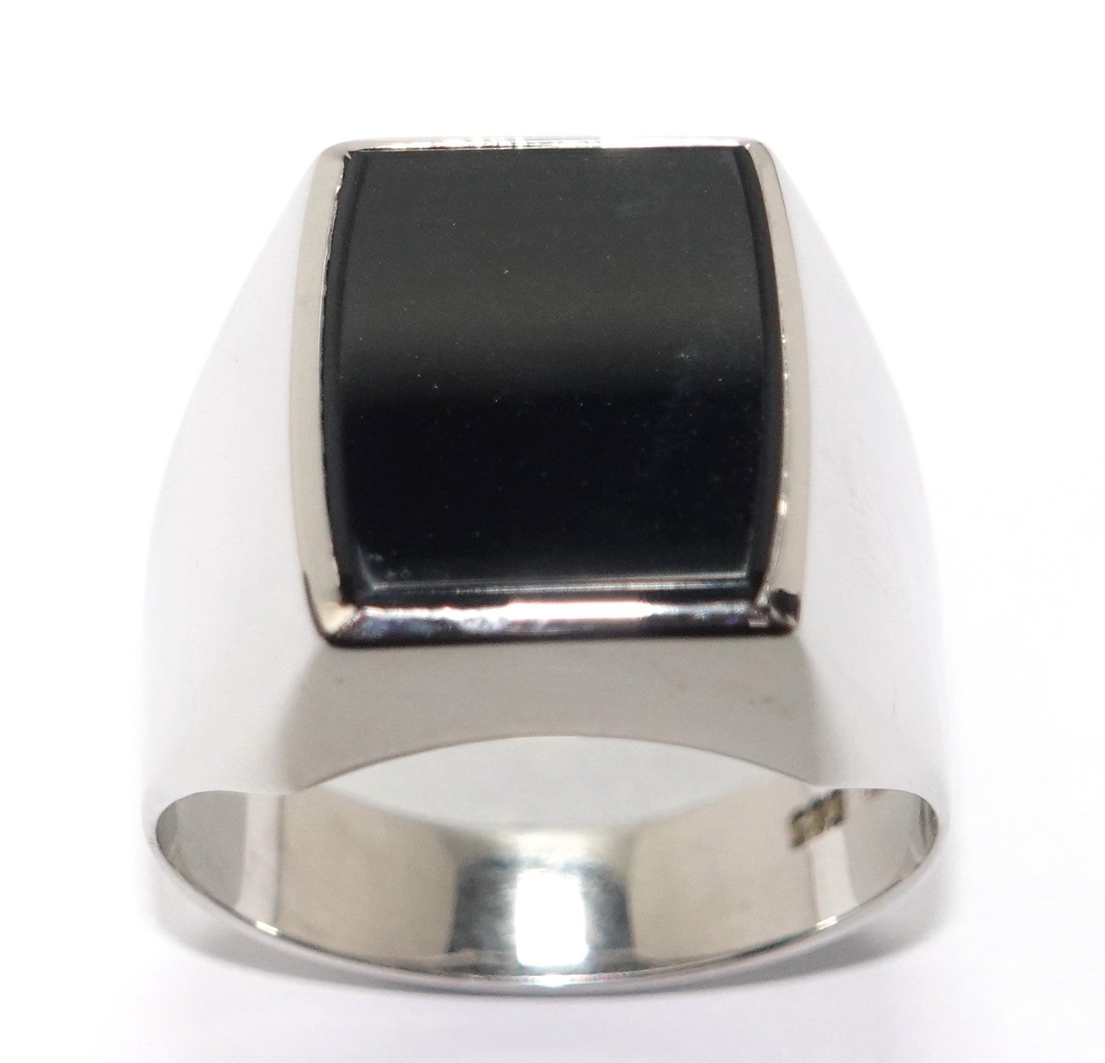 Ring Herren Gold 585 Weißgold Onyx Gr. 66/21mm änderbar 9,4 Gramm