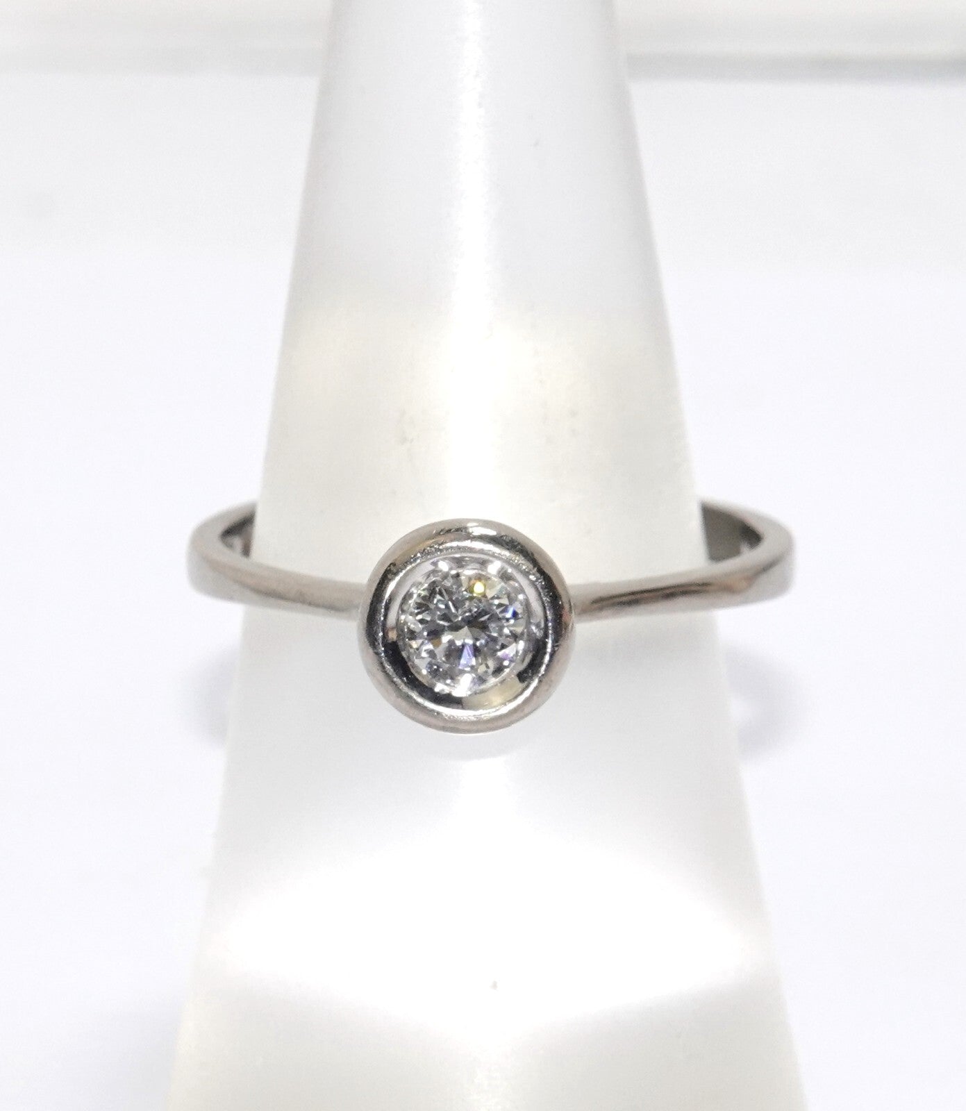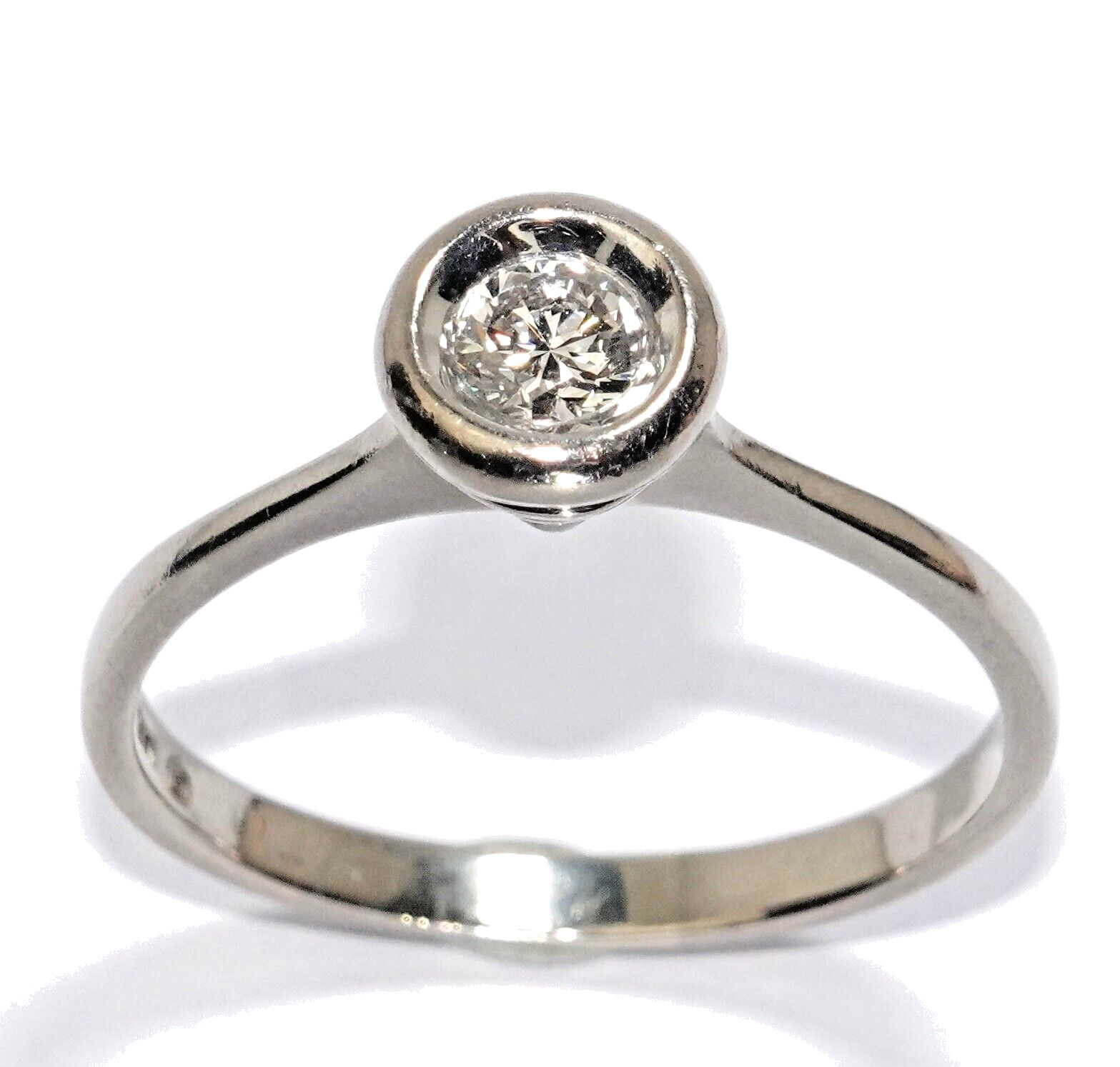 Antiker Solitär-Ring in 585/14K Weißgoldhandgefertigt von Friedrich Binder, Monsheim (D)1 Altschliff-Diamant (Old European Cut) 0.275 ct., Farbe HGröße: 60/19,1 mm - änderbar von Gr. 56 bis 63Gesamtgewicht: 3,5 g