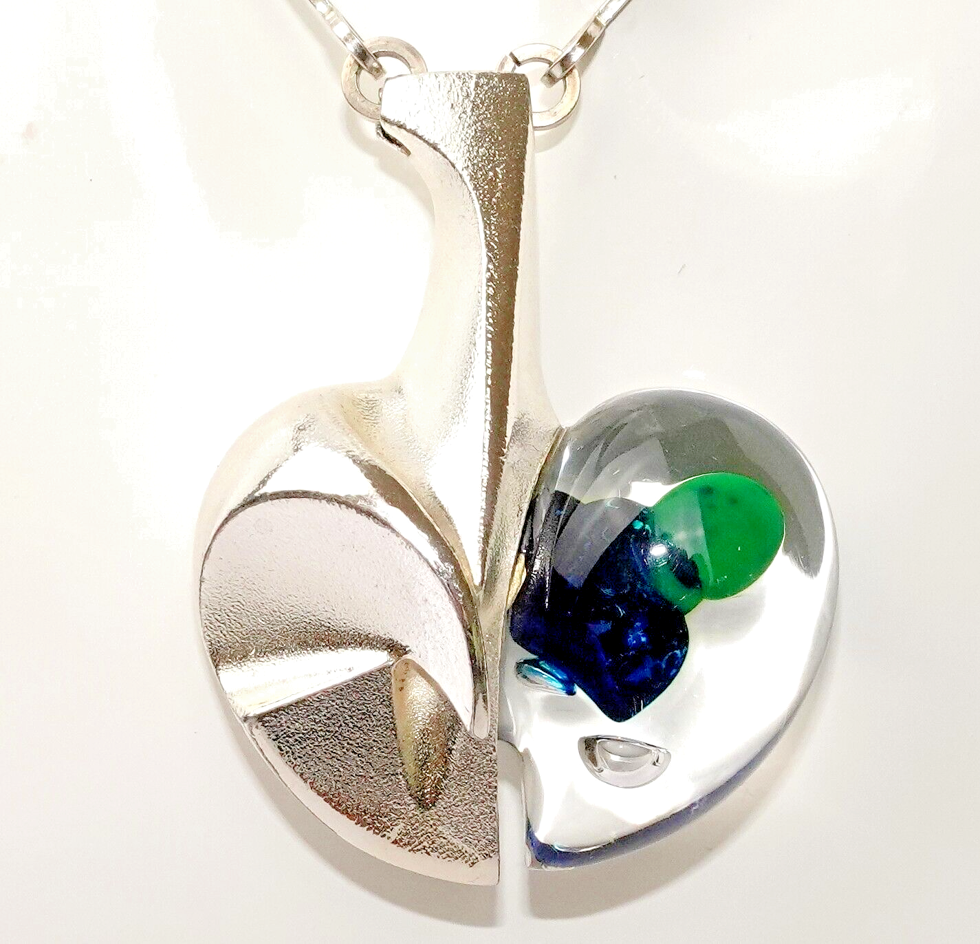 Silber 925, 37,5 Gramm und Resin (Acrylharz, mit farbigen Blasen in klar, grün und blau)