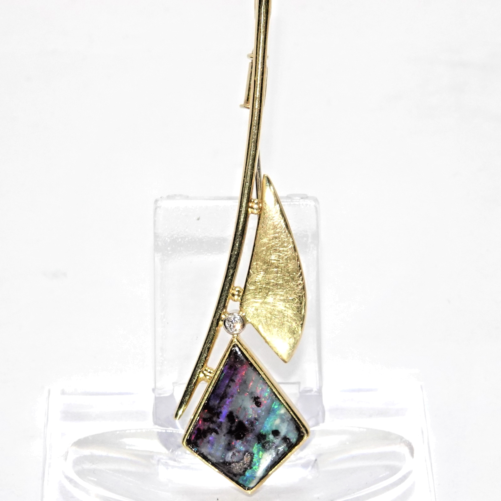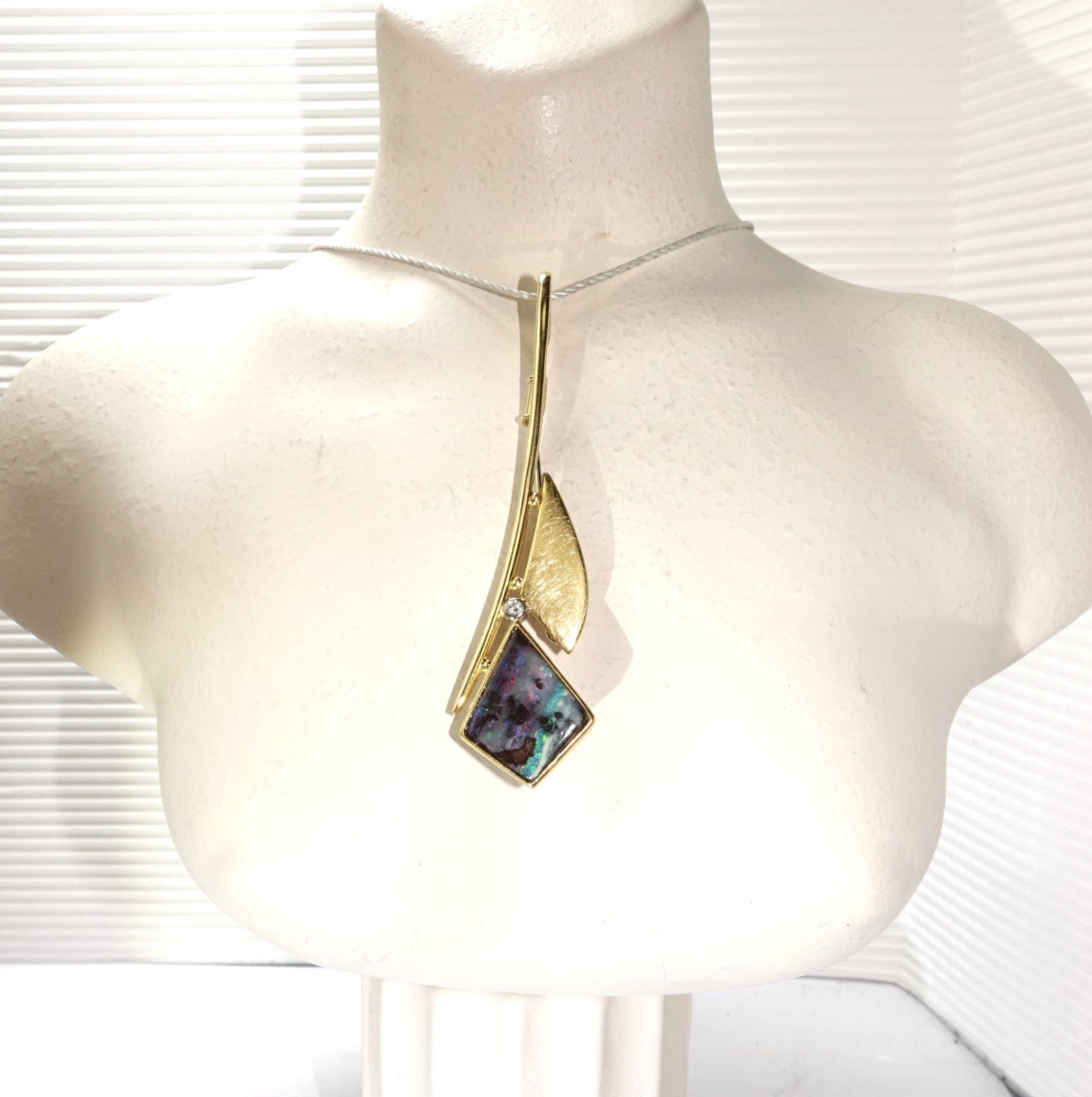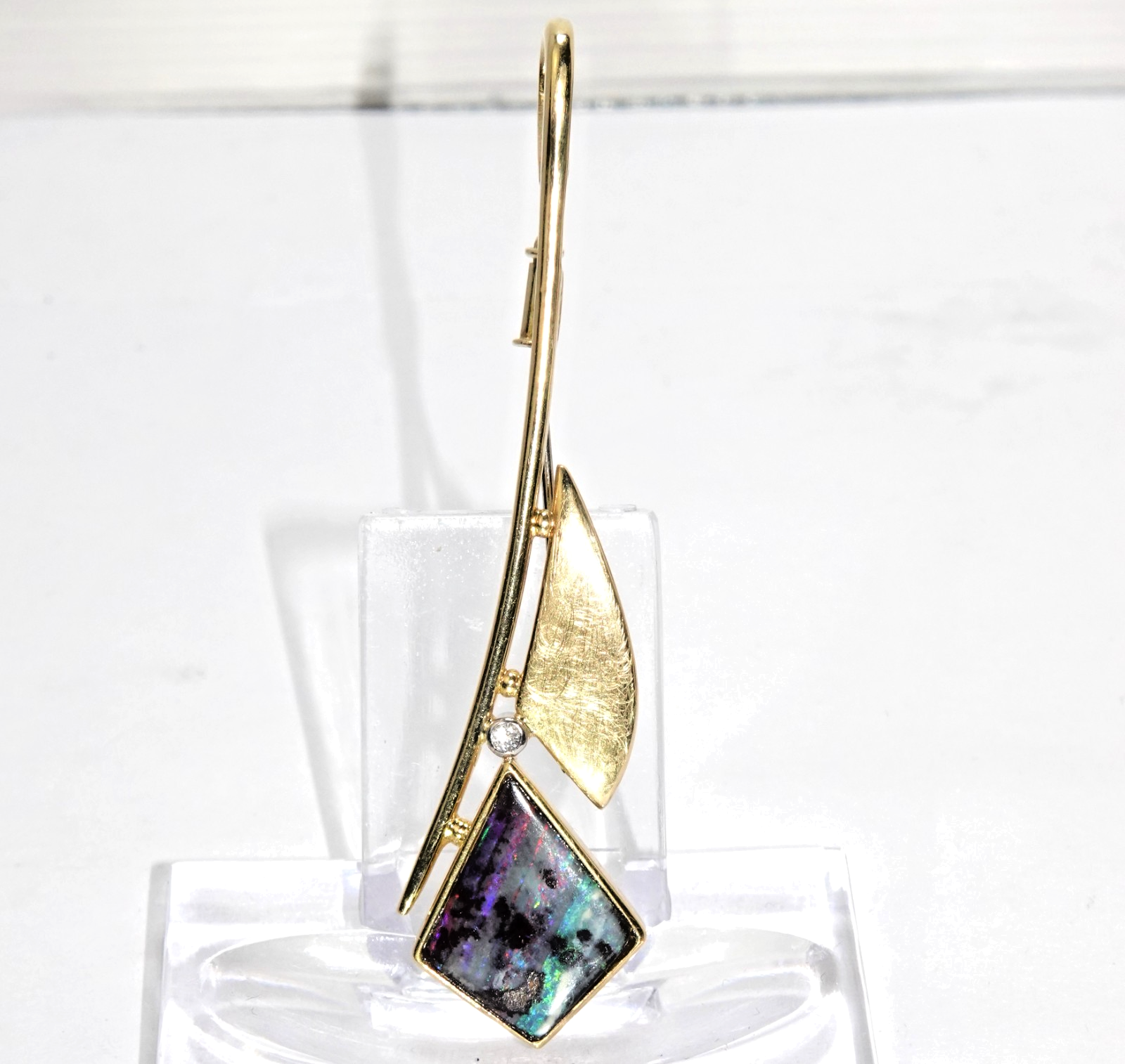 Anhänger Gold Opal 4,7ct. austral. Boulder Diamant 0,05ct. 750/18K 68x17mm 8,9g