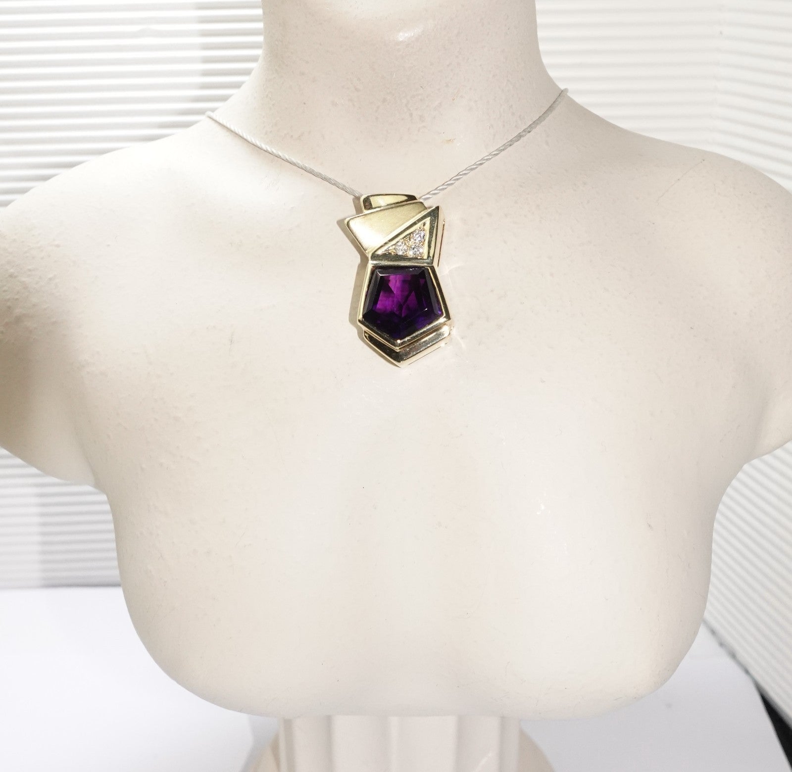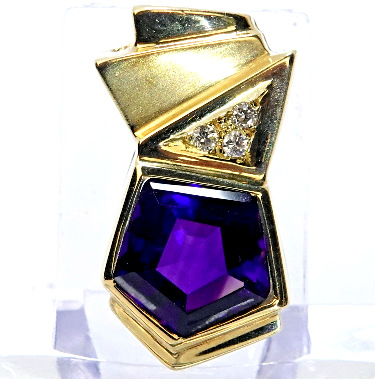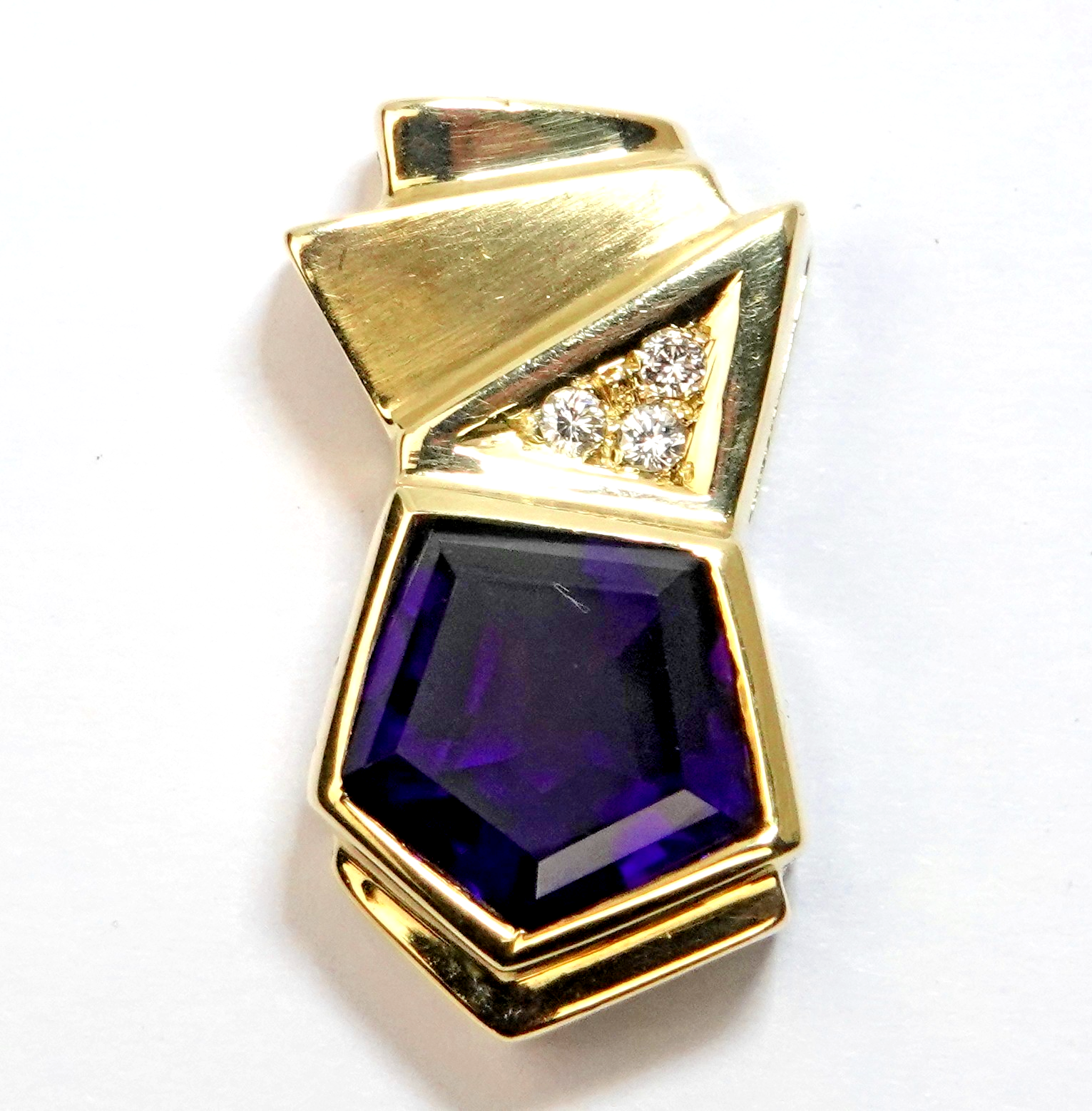 Anhänger Gold Amethyst 7,5ct Diamant 0,12 585/14K 30x15,5 mm 9,2 Gramm