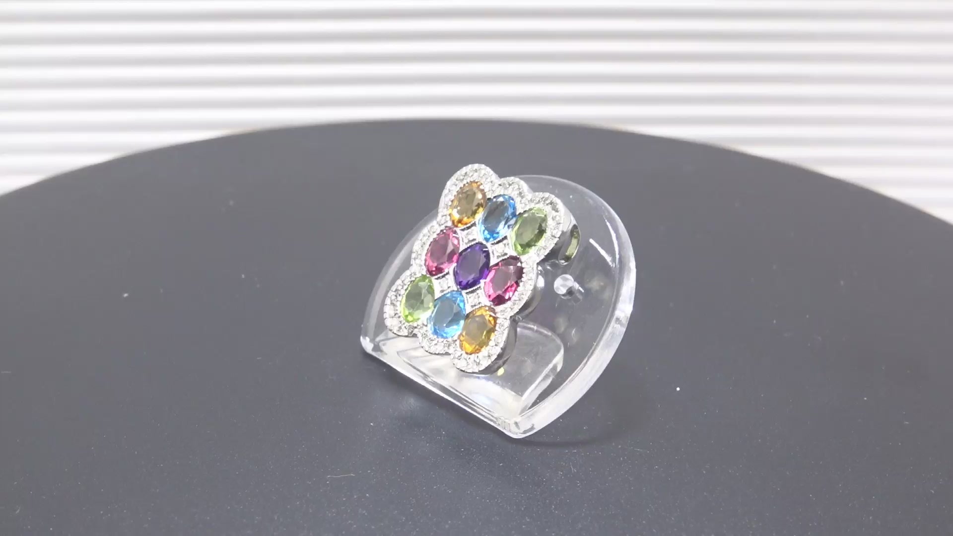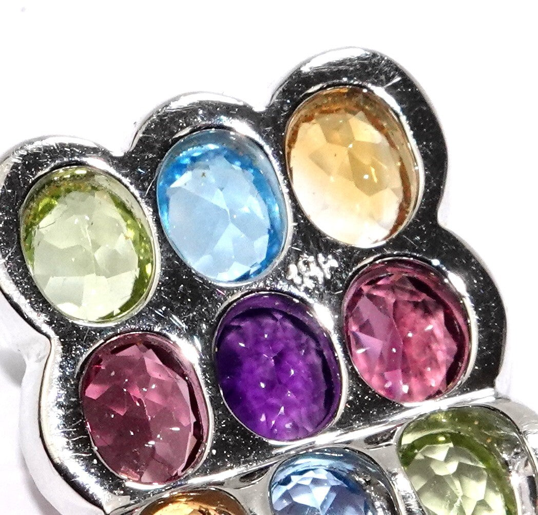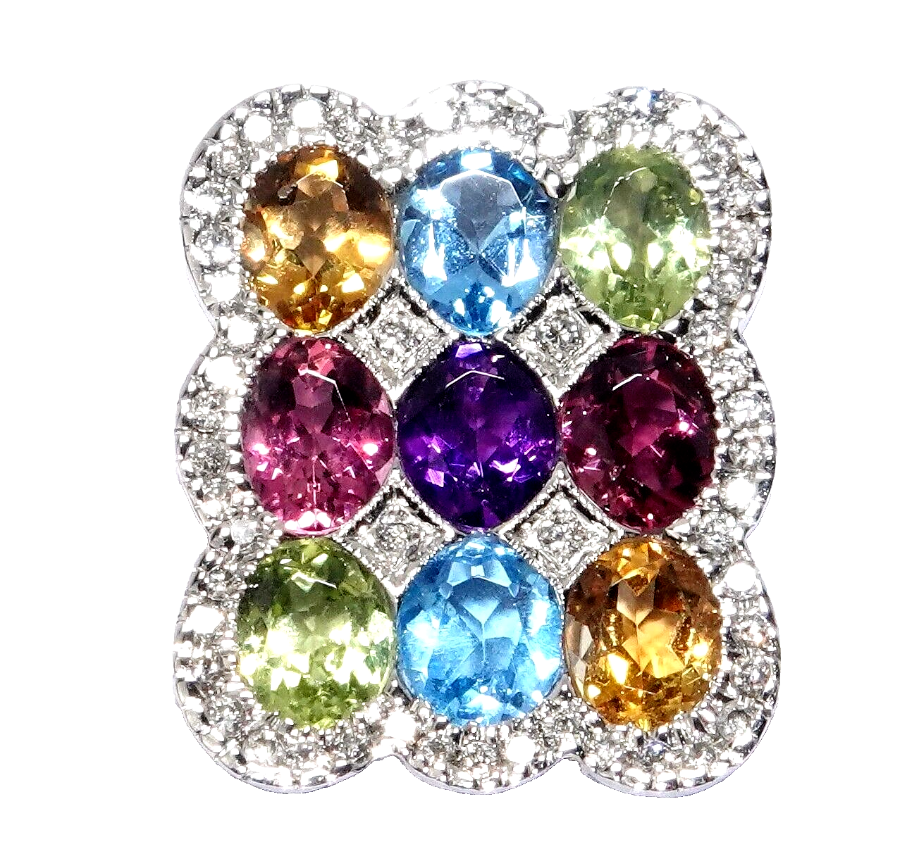 (2x Citrin; 2x Aquamarin; 2 x Peridot; 2 x Turmalin; 1 x Amethyst), alle Steine im ovalen Schliff.