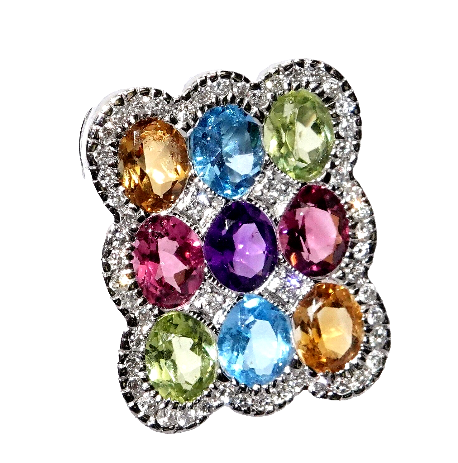 Anhänger Gold Farbedelsteine 2,45ct. 56 Diam.0,30 Weißgold 750/18K 19x15 mm 5,3g