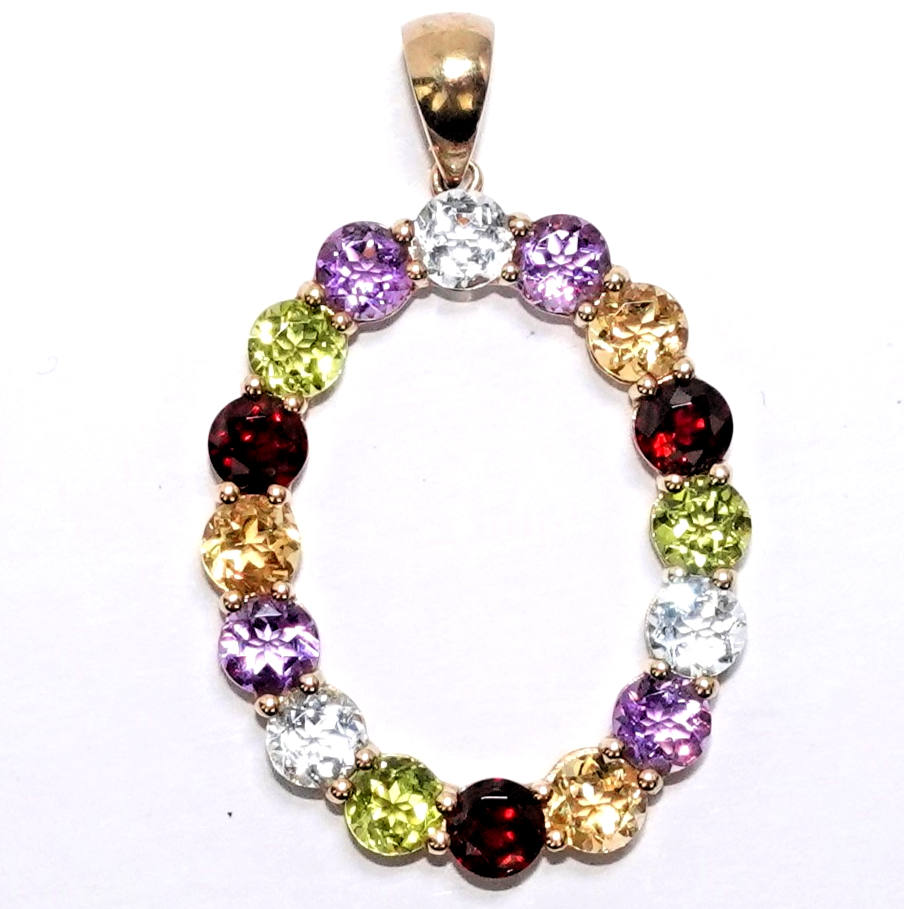 Anhänger Gold Farbedelsteine natürlich 9,6ct. Gelbgold 375/9K 45x28mm 5,3g