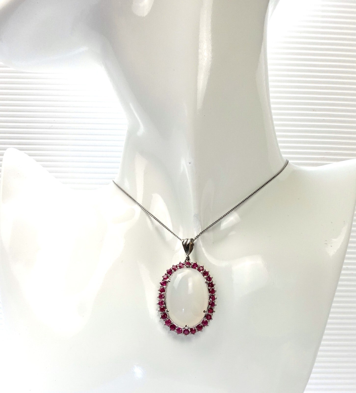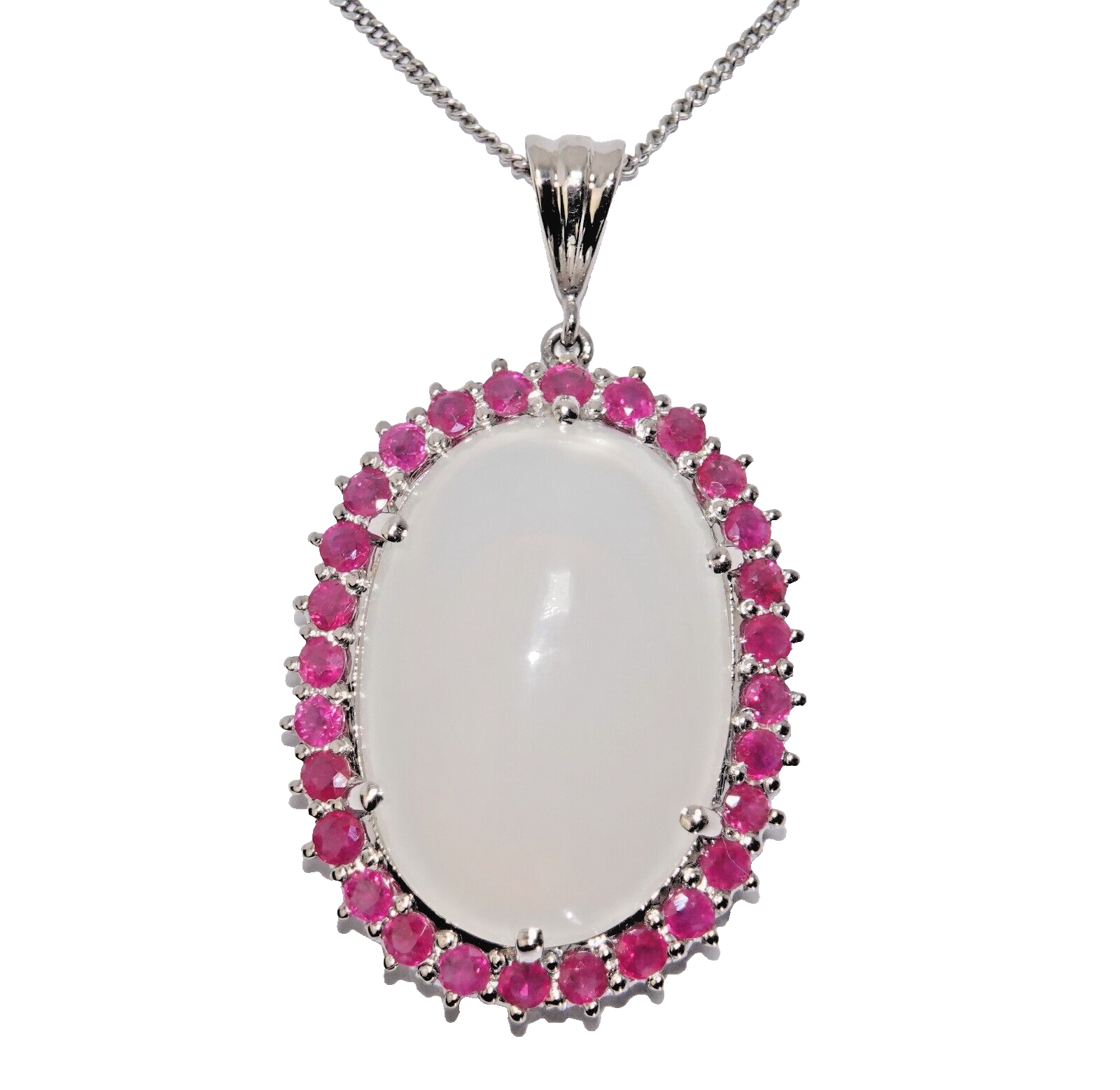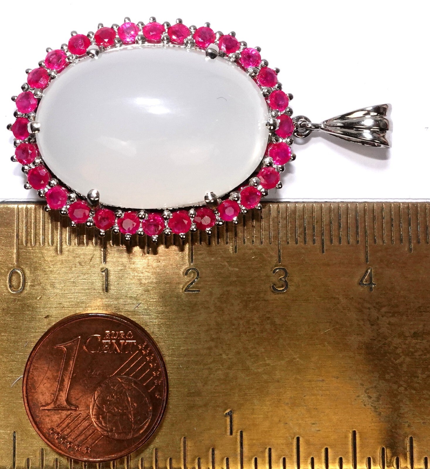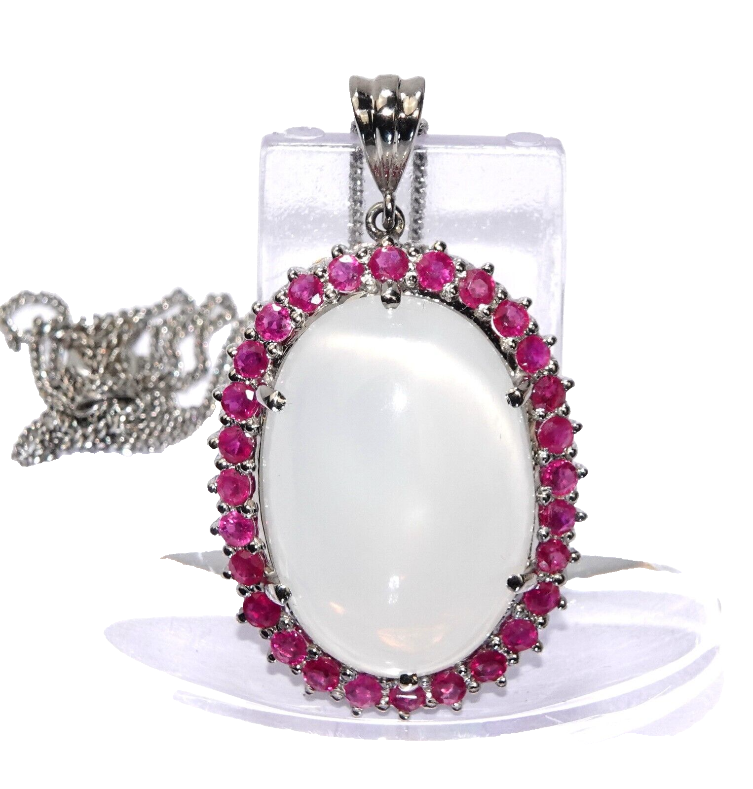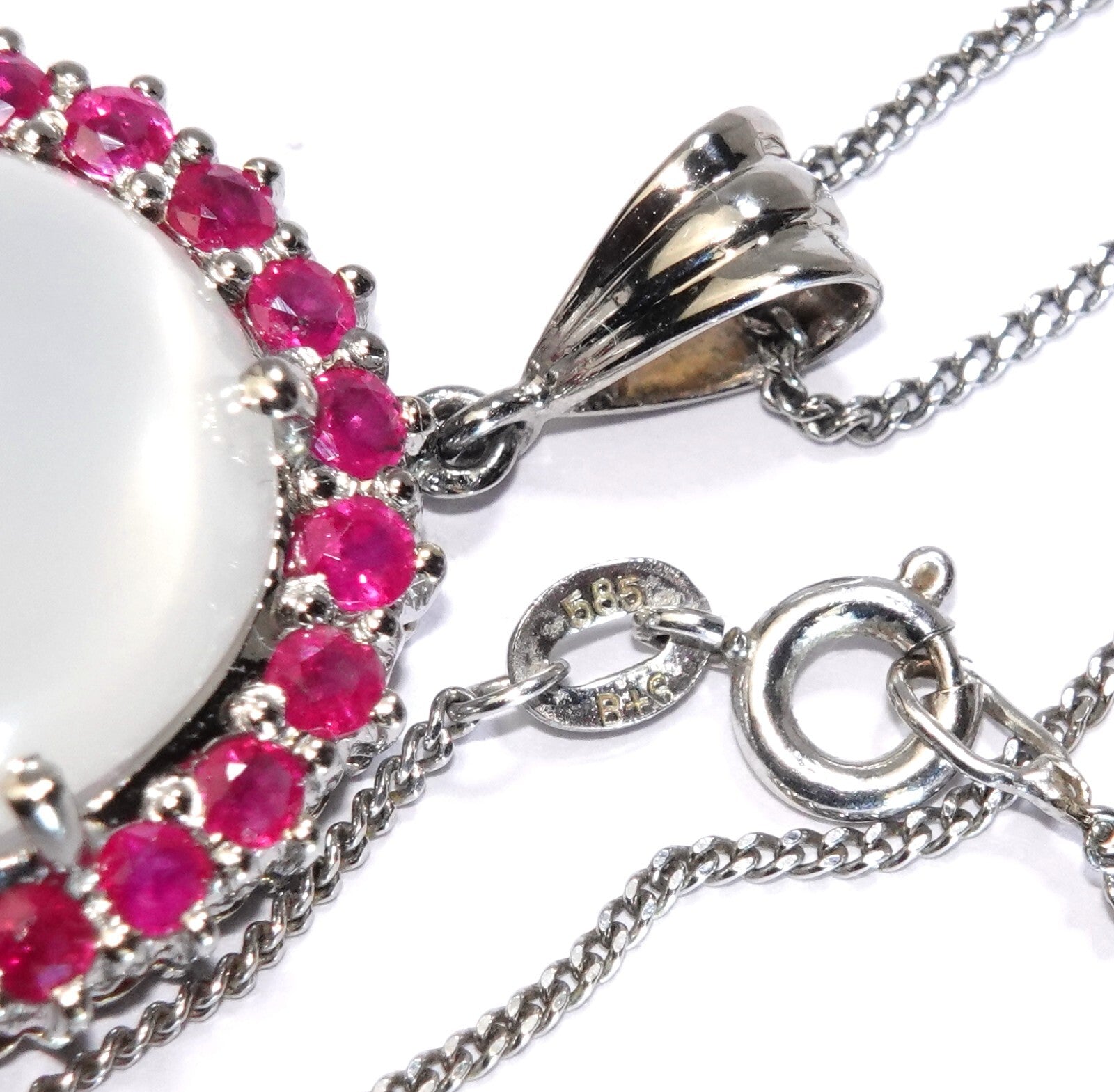 Anhänger Gold Mondstein 33 ct. Rubine 1,96ct. mit Kette 585/14K 44x25mm 15,6g