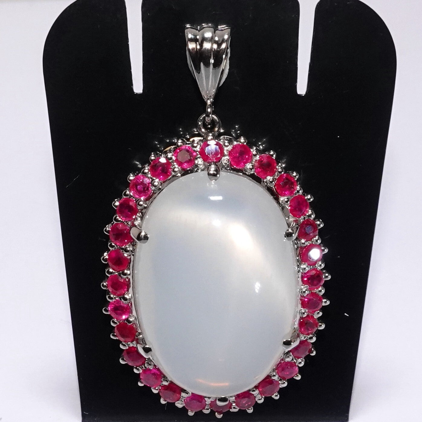 Spektakulärer 33 Karat Mondstein - 28 Rubine 1,96 Karat