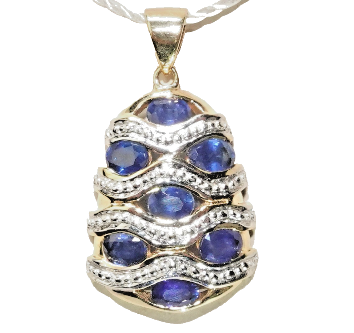 Anhänger Gold Saphir 1,19ct. Harry Ivens 585/14K bicolor 27x14,6 mm 3,2g