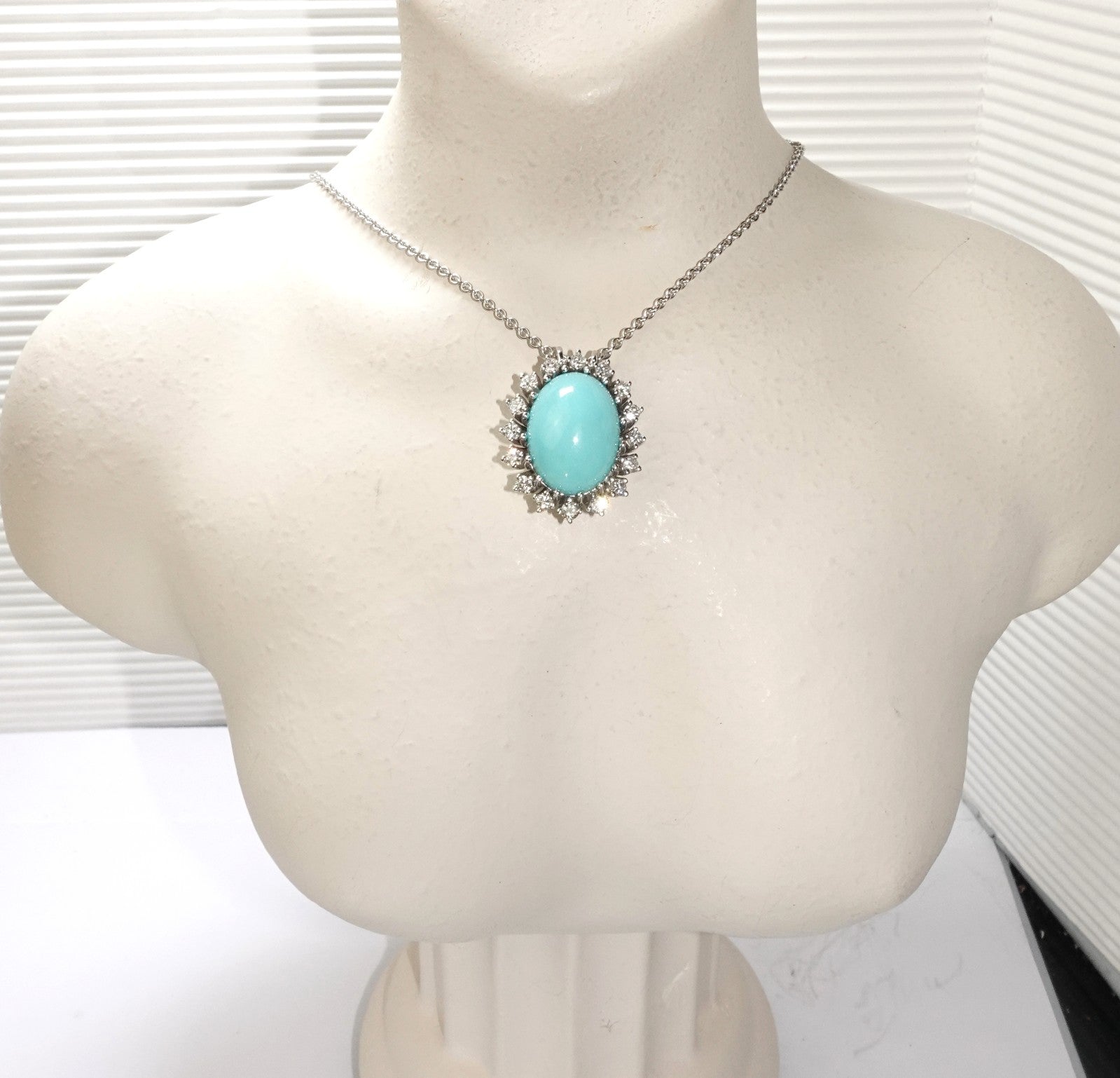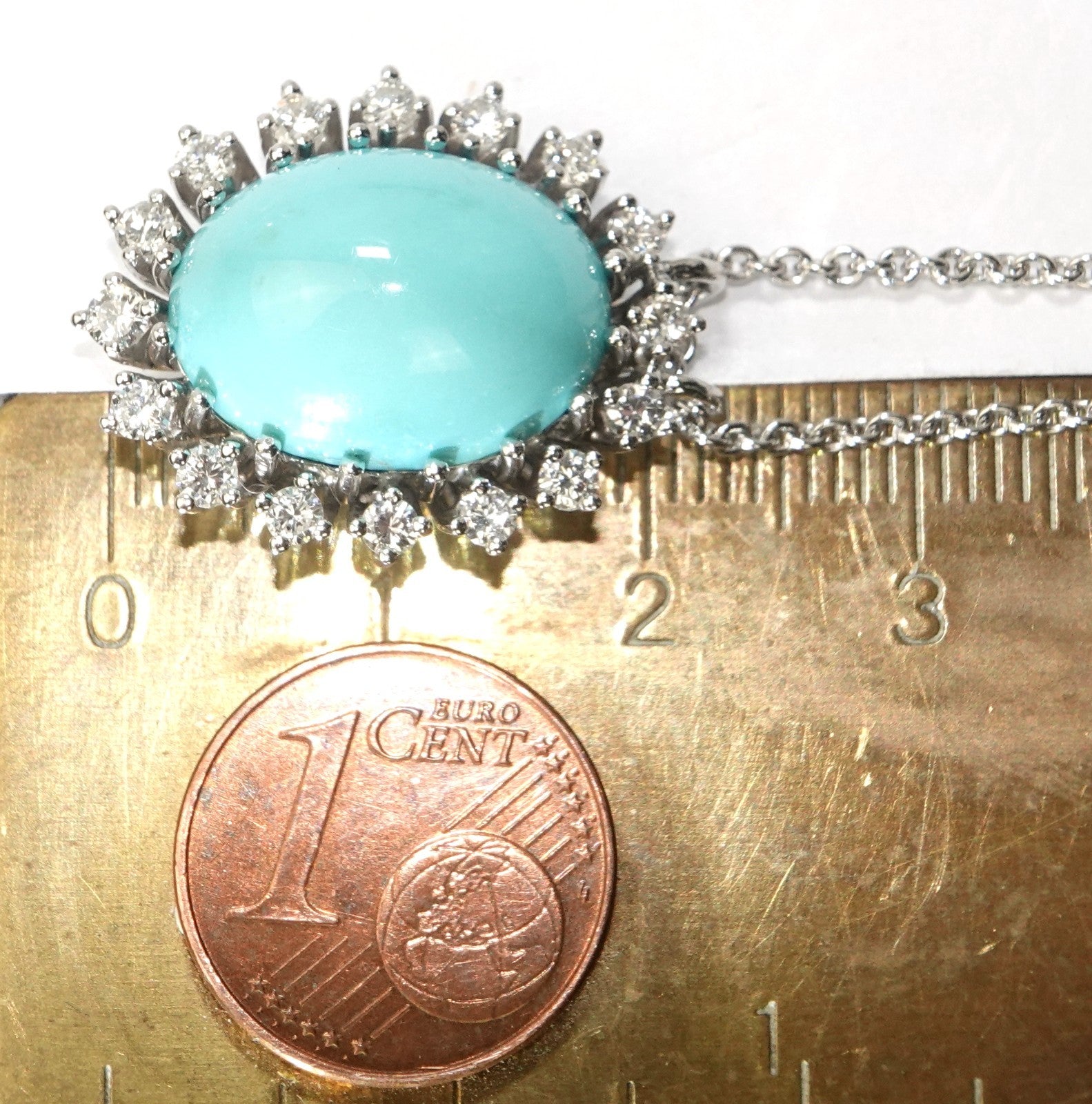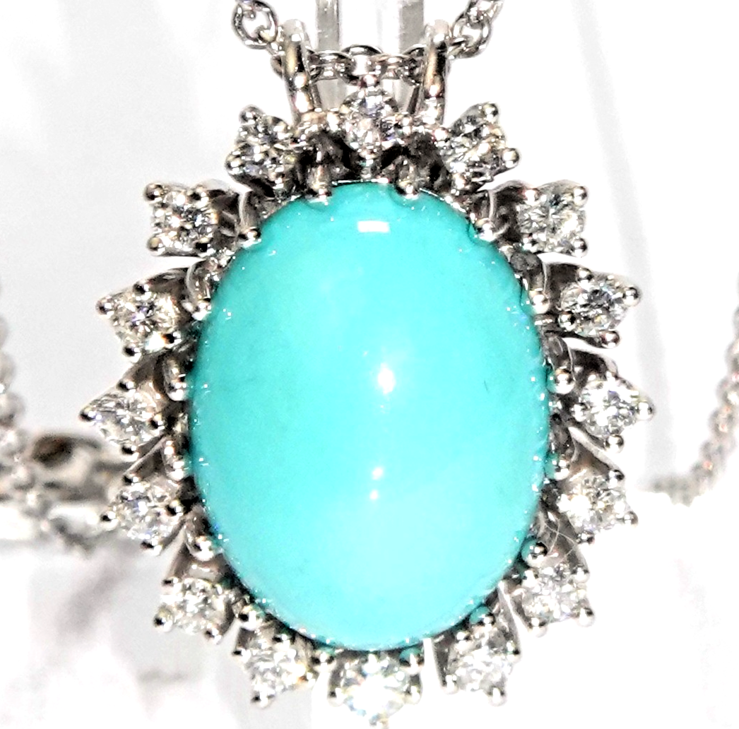 Anhänger Gold Türkis 11,5ct. Diamant 0,80ct. 750/18K 23x17mm Kette 42 cm 12,3g