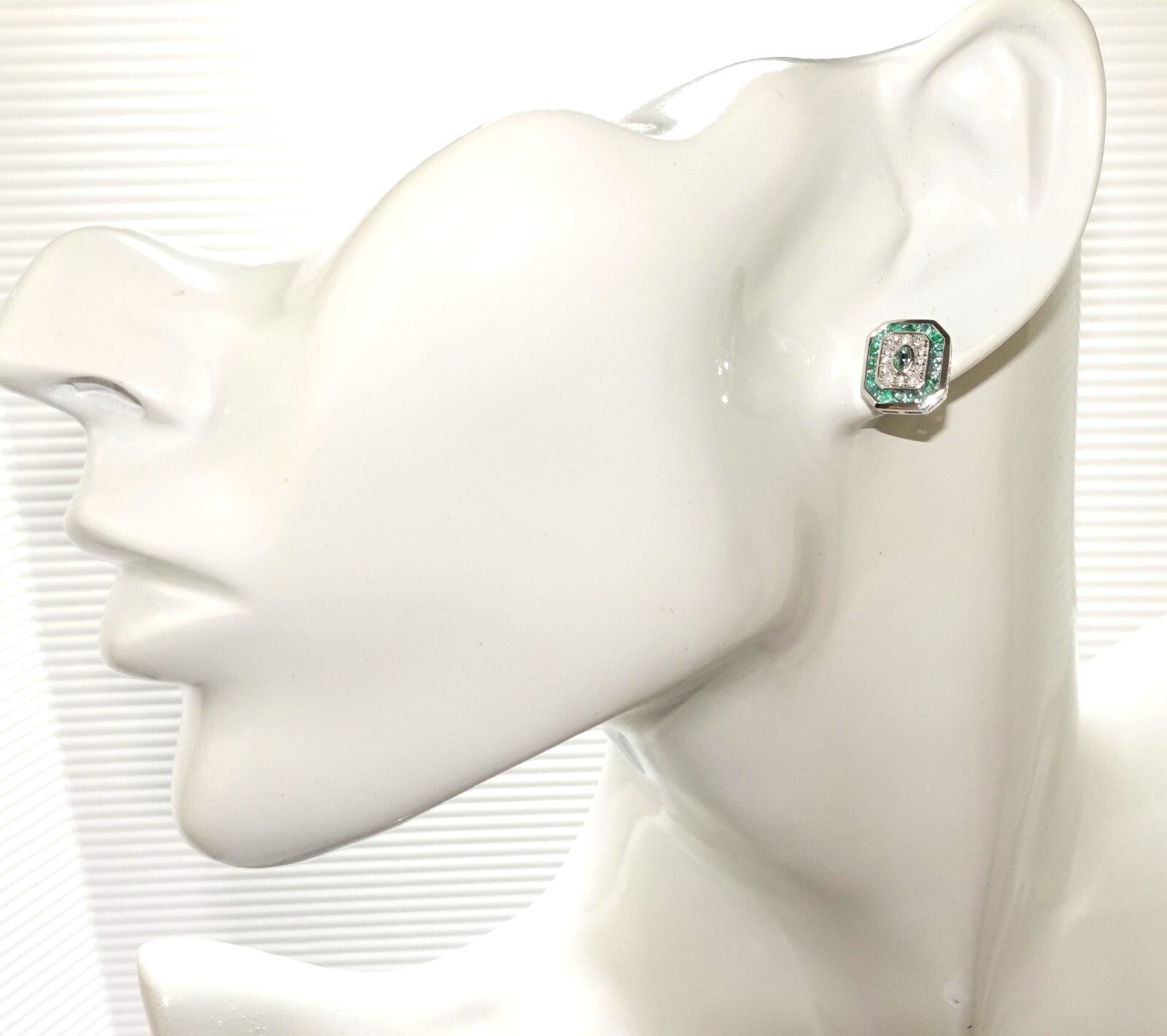 Achteckige Vintage Ohrstecker in 585/14K Weißgold