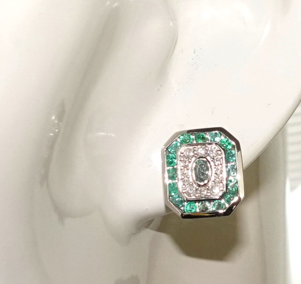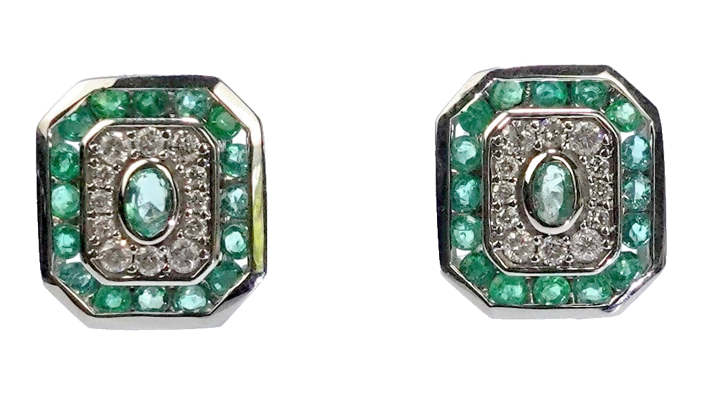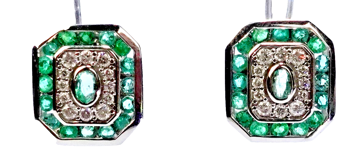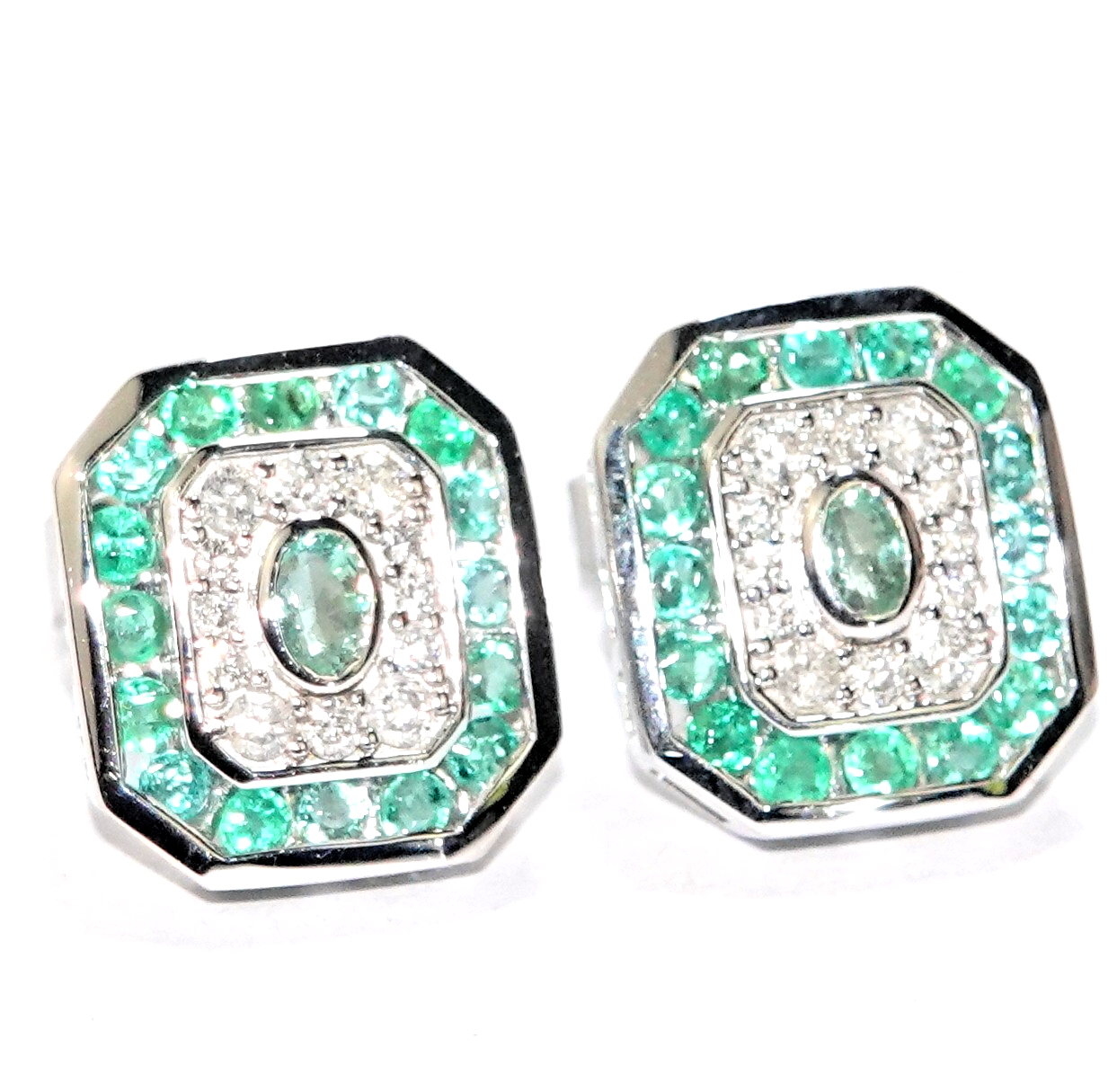 Ohrringe Gold Smaragd 0,60 Diamant 0,24 ct. 585/14K 11,7 x 10,6 mm