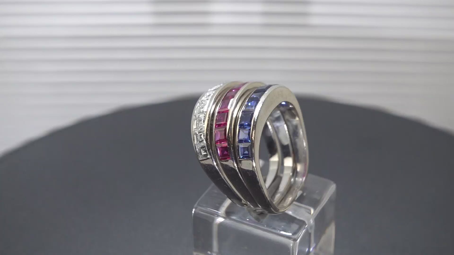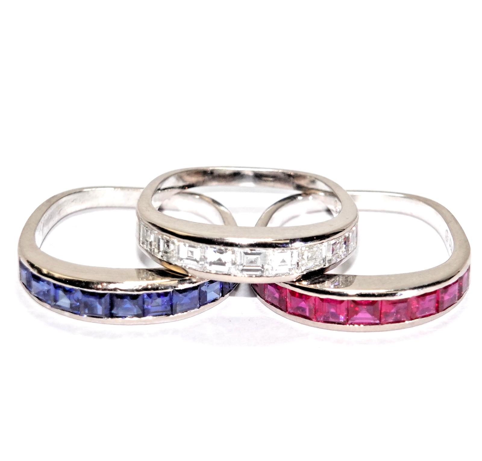 9 Diamanten (Asscher), 9 Saphire, 9 Rubine - alle Steine in exzellenter Qualität