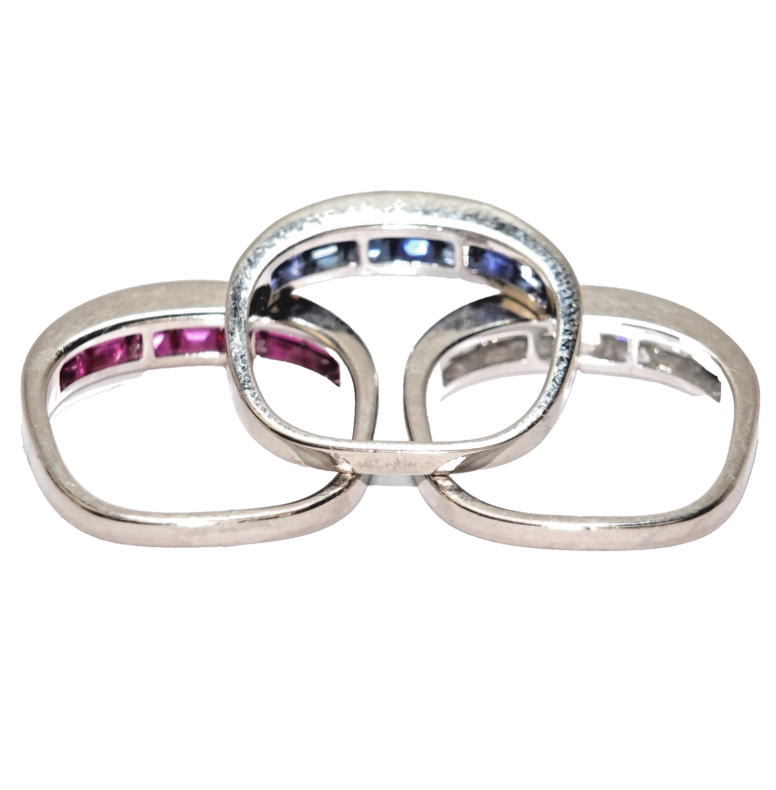 Ring Gold Diamant 3,0 Asscher Rubin Saphir Set von 3 750/18K Gr.53-56/17,9mm
