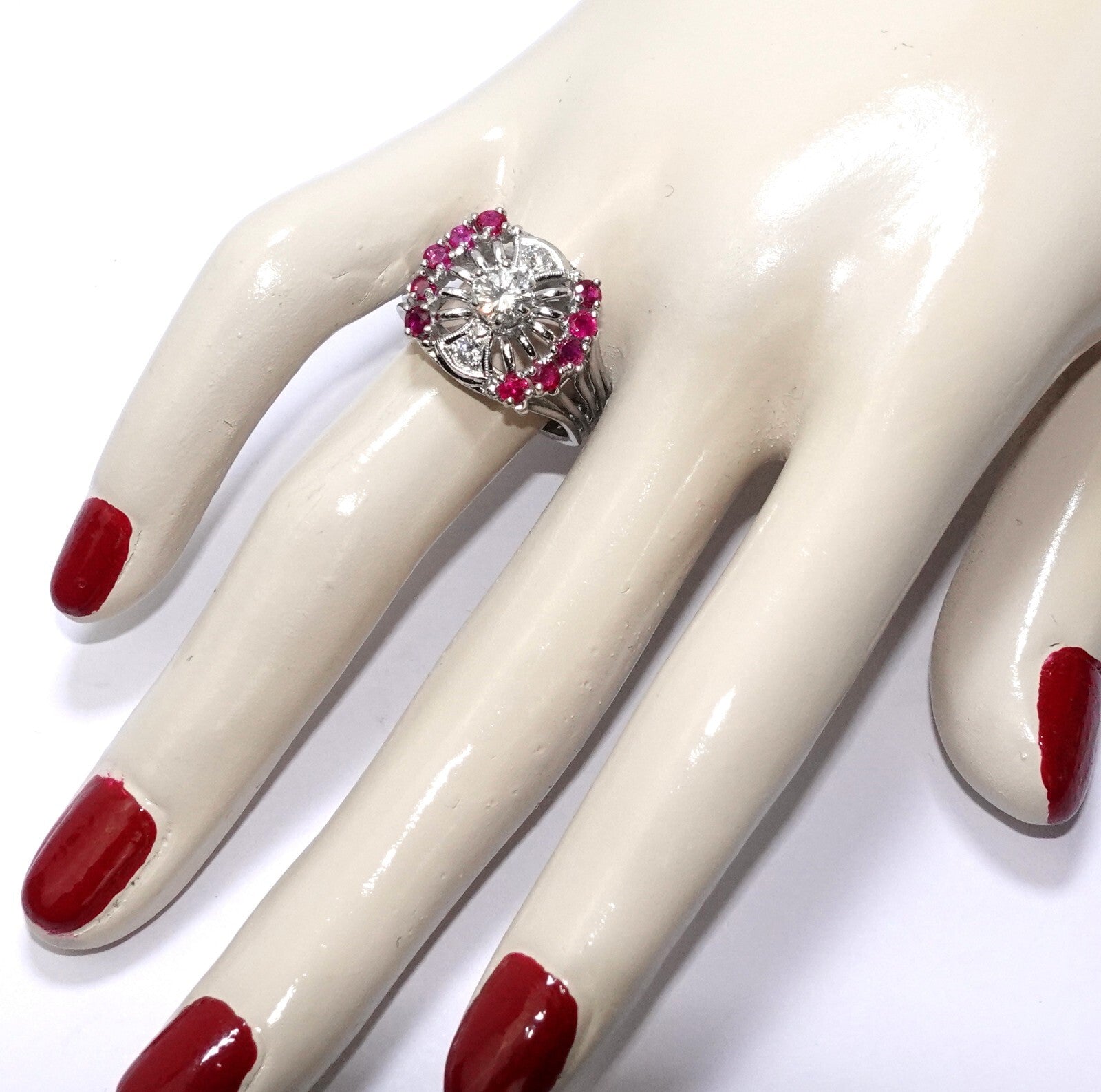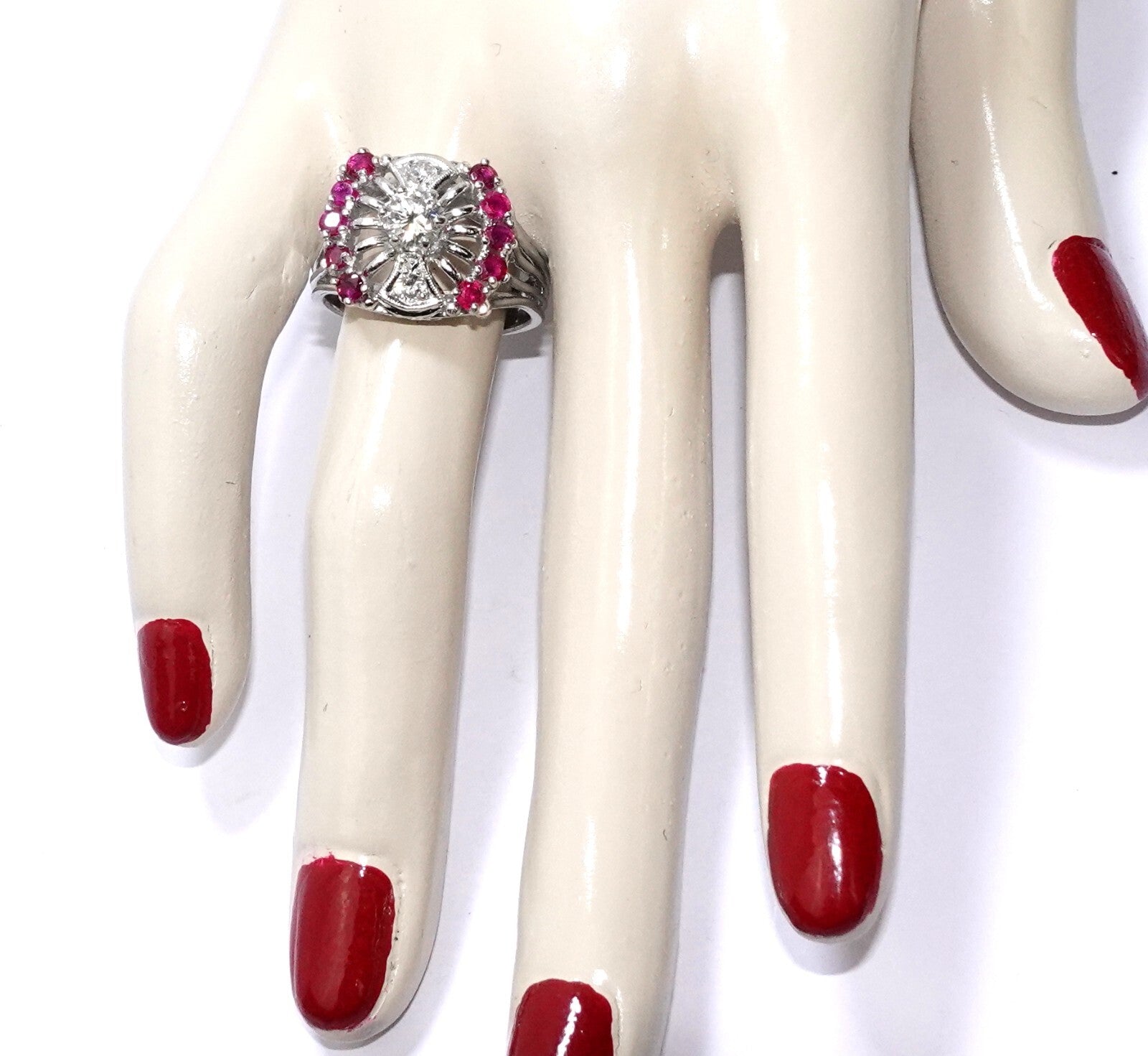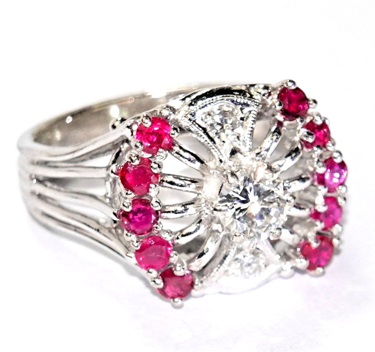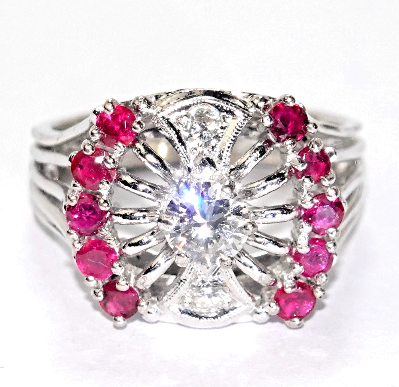 Ring Gold Diamant Altschliff 0,64ct. 10 Rubine 0,50c 585/14K Gr.57/18,2mm 7,8g