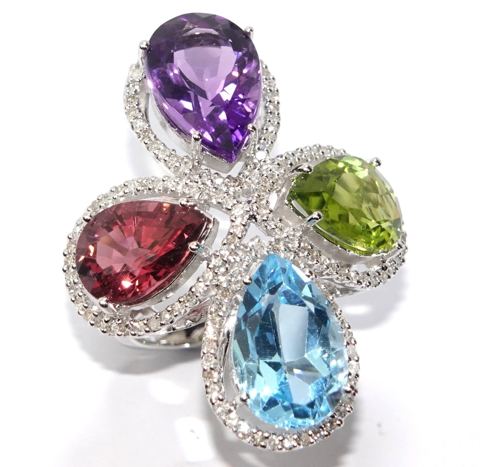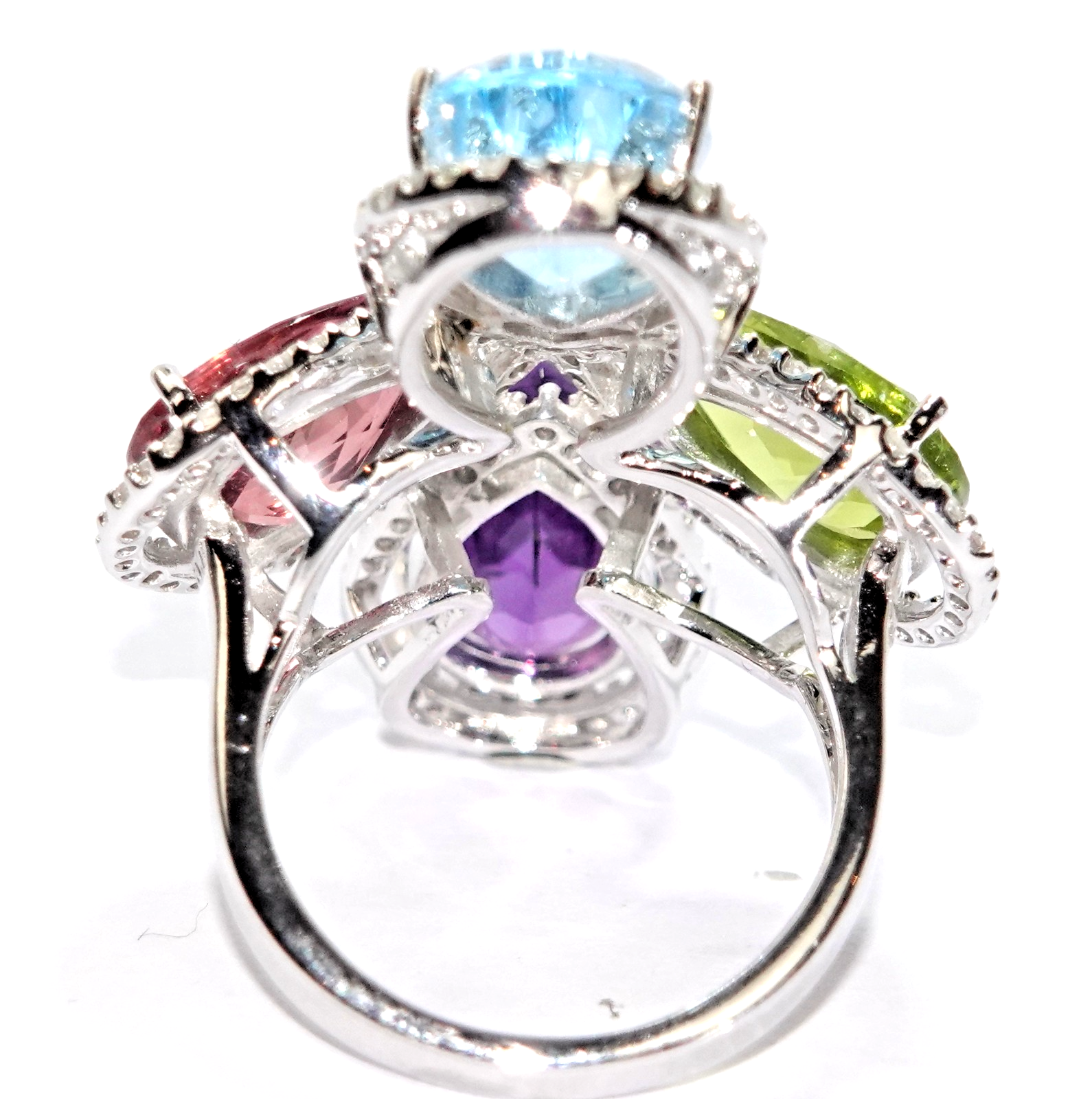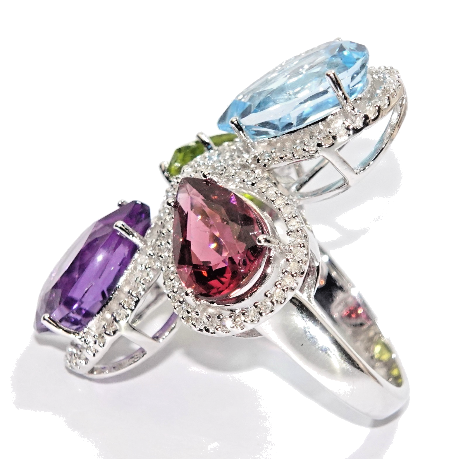 Topas (6,05 ct), Peridot (5,72 ct), Amethyst (4,6 ct), Turmalin (5,3 ct.)