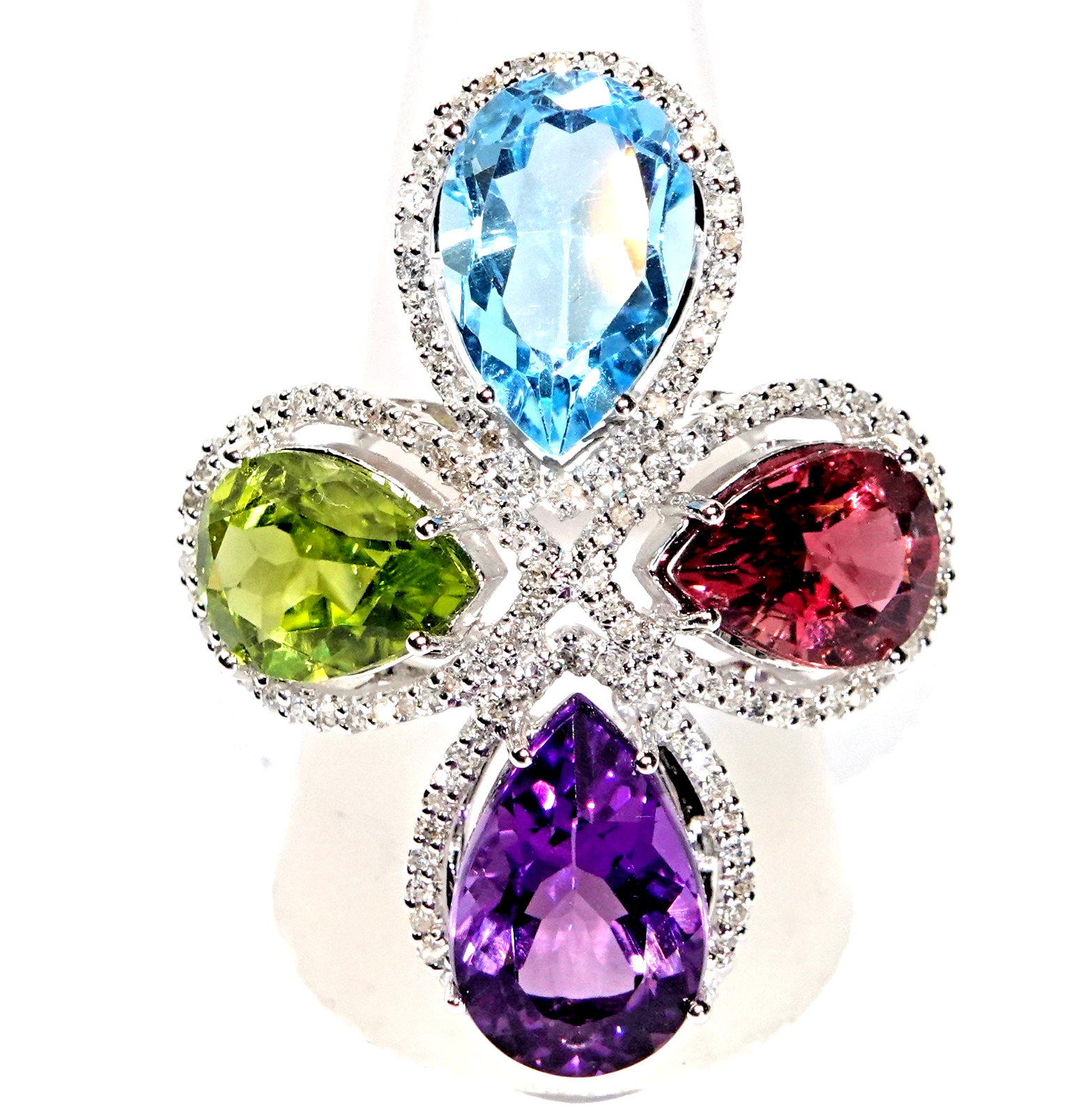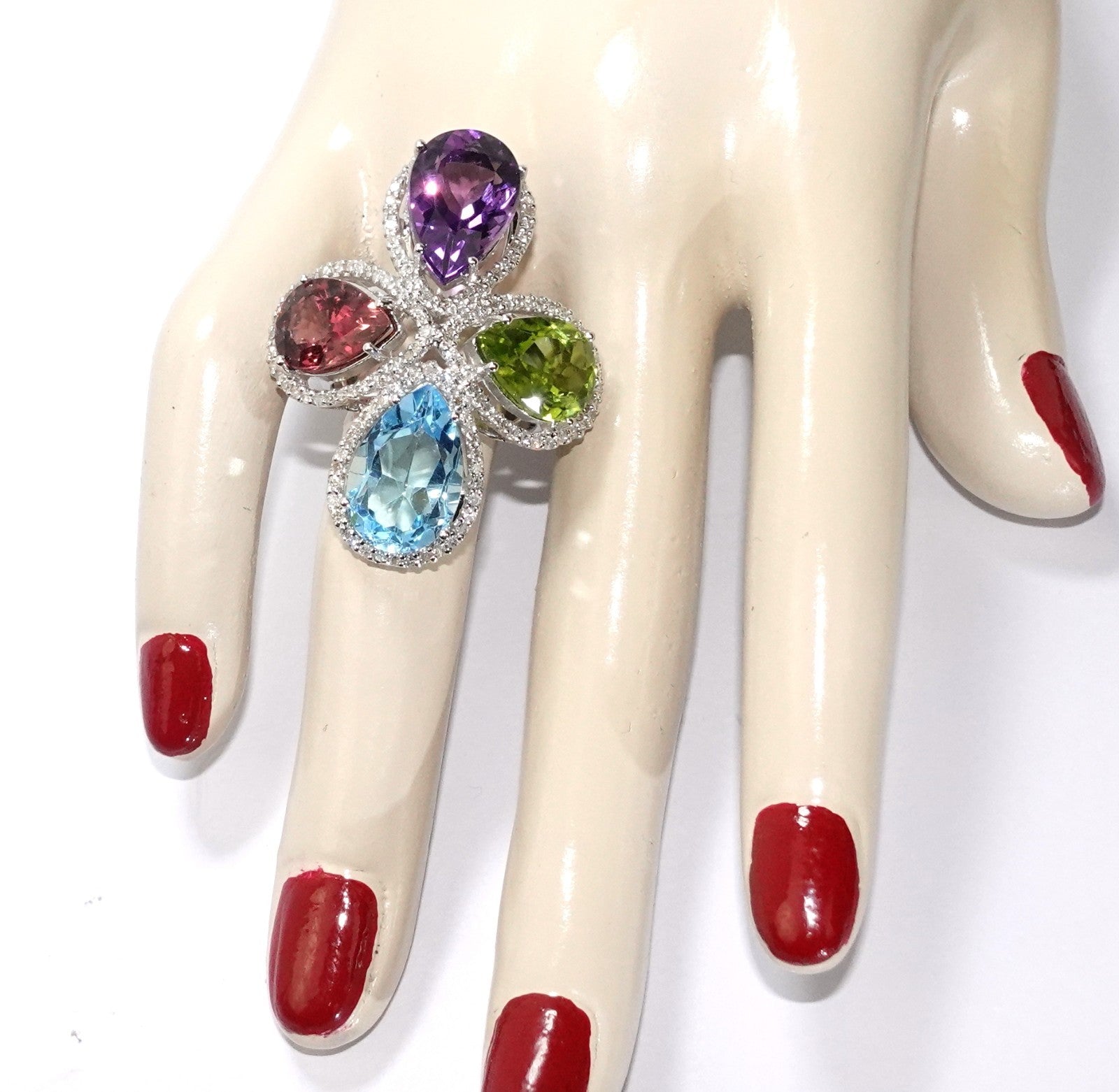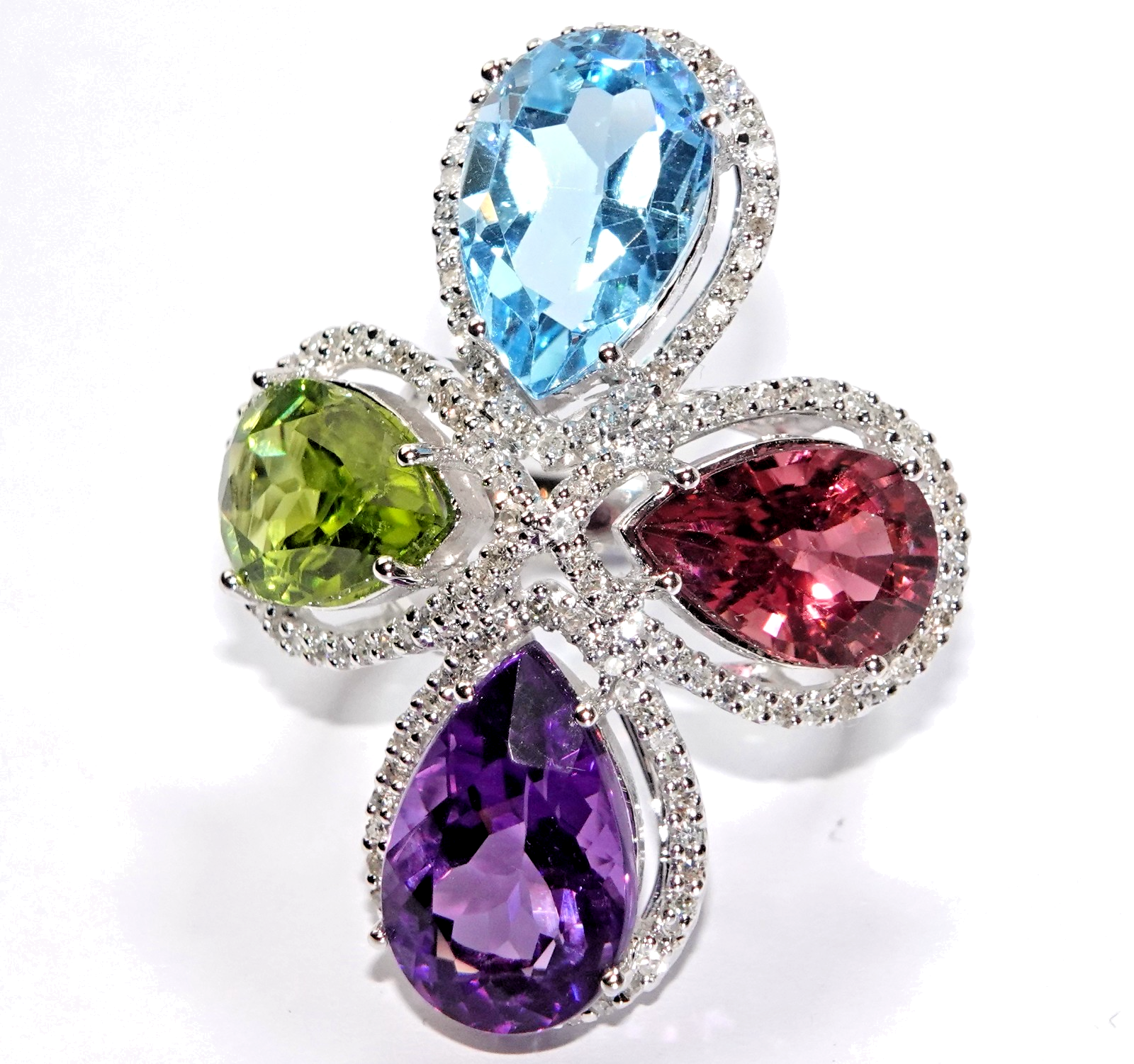 Topas (6,05 ct), Peridot (5,72 ct), Amethyst (4,6 ct), Turmalin (5,3 ct.)
