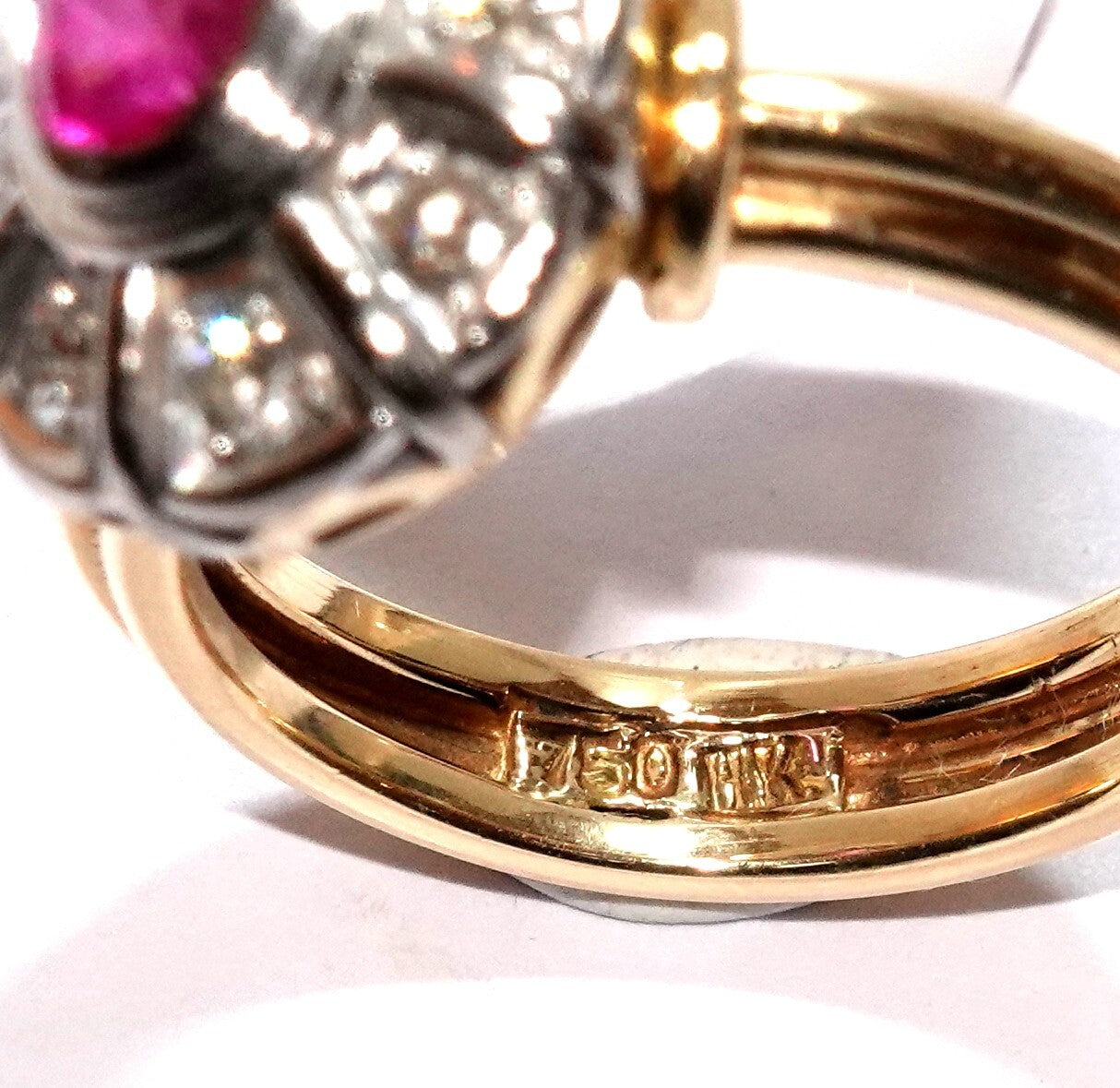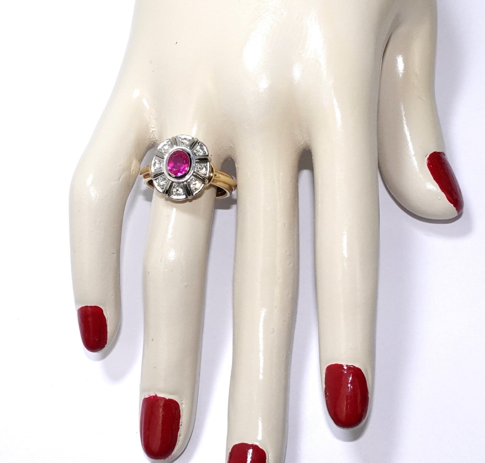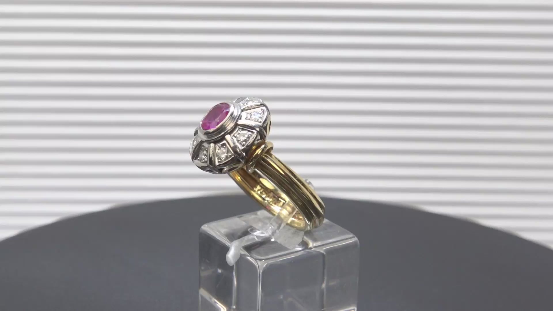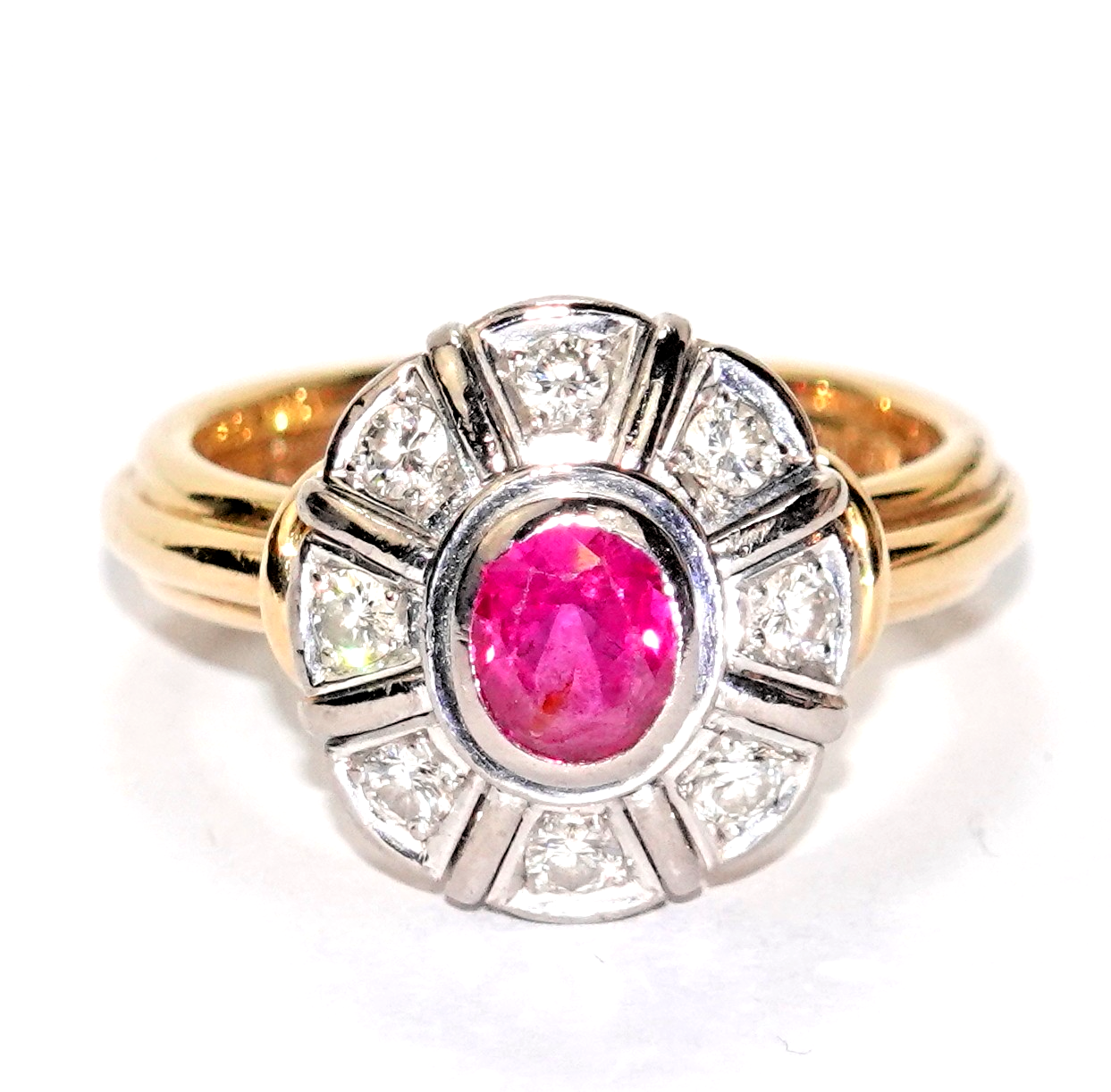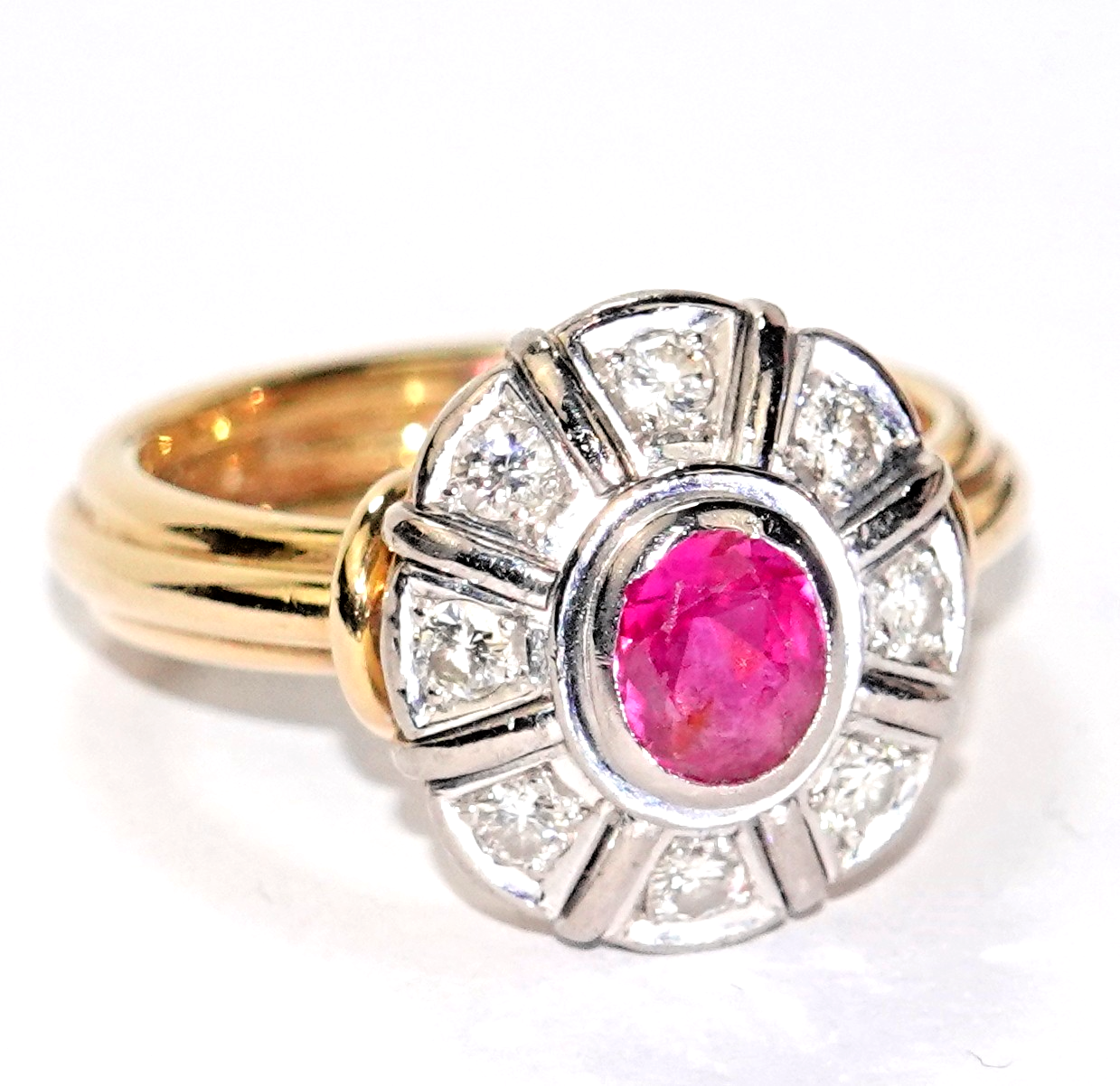 Ring Gold Rubin 0,50 Diamant 0,32ct. 750/18K bicolor Gr.56/17,8mm 9,2g
