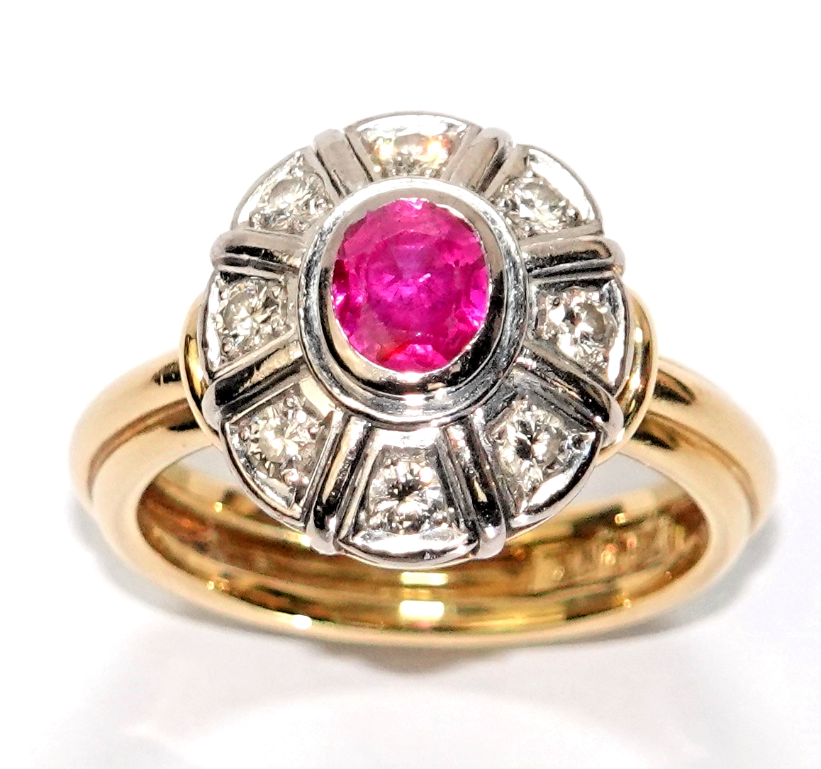 1 Rubin 0,50 ct.- 8 Diamanten 0,32 ct.