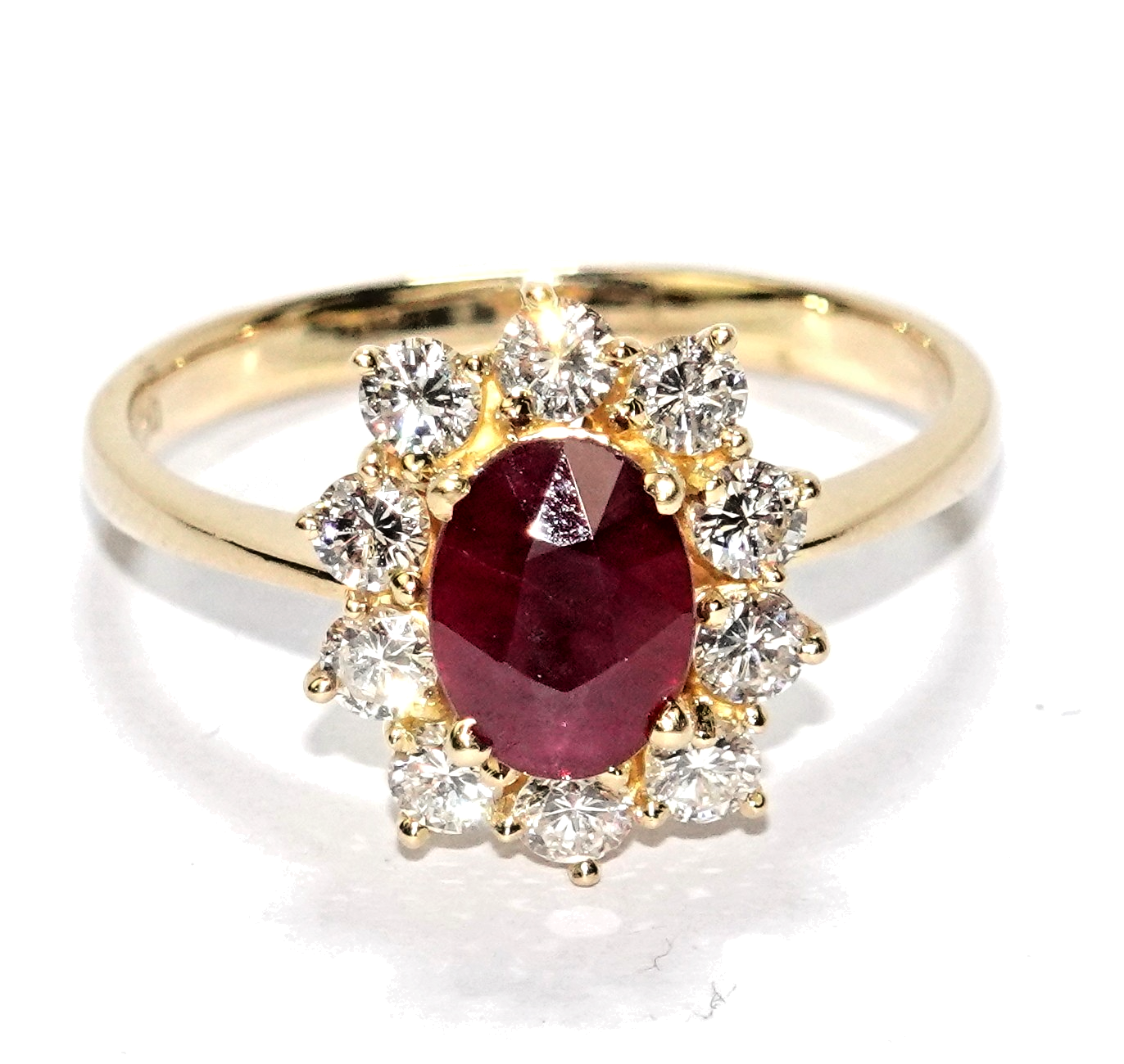 Ring Gold Rubin 1,5ct. Diamanten 0,60ct. 750/18K Gr.62/19,7 kostenlos änderbar