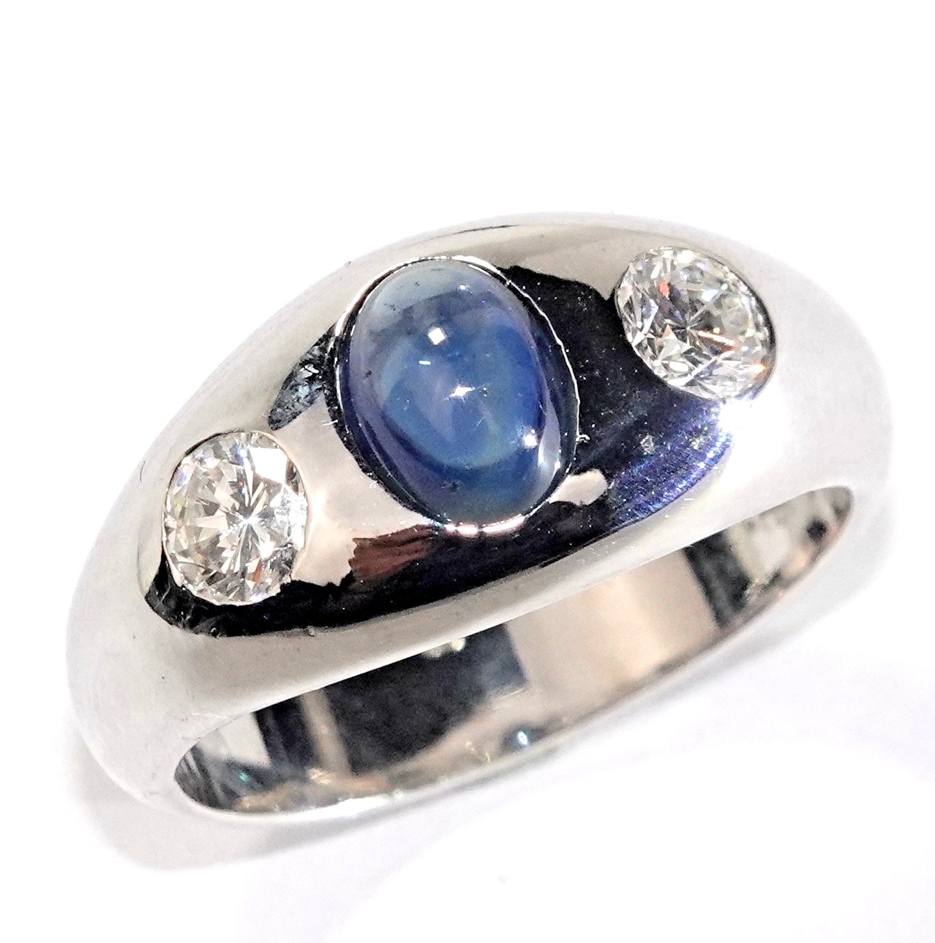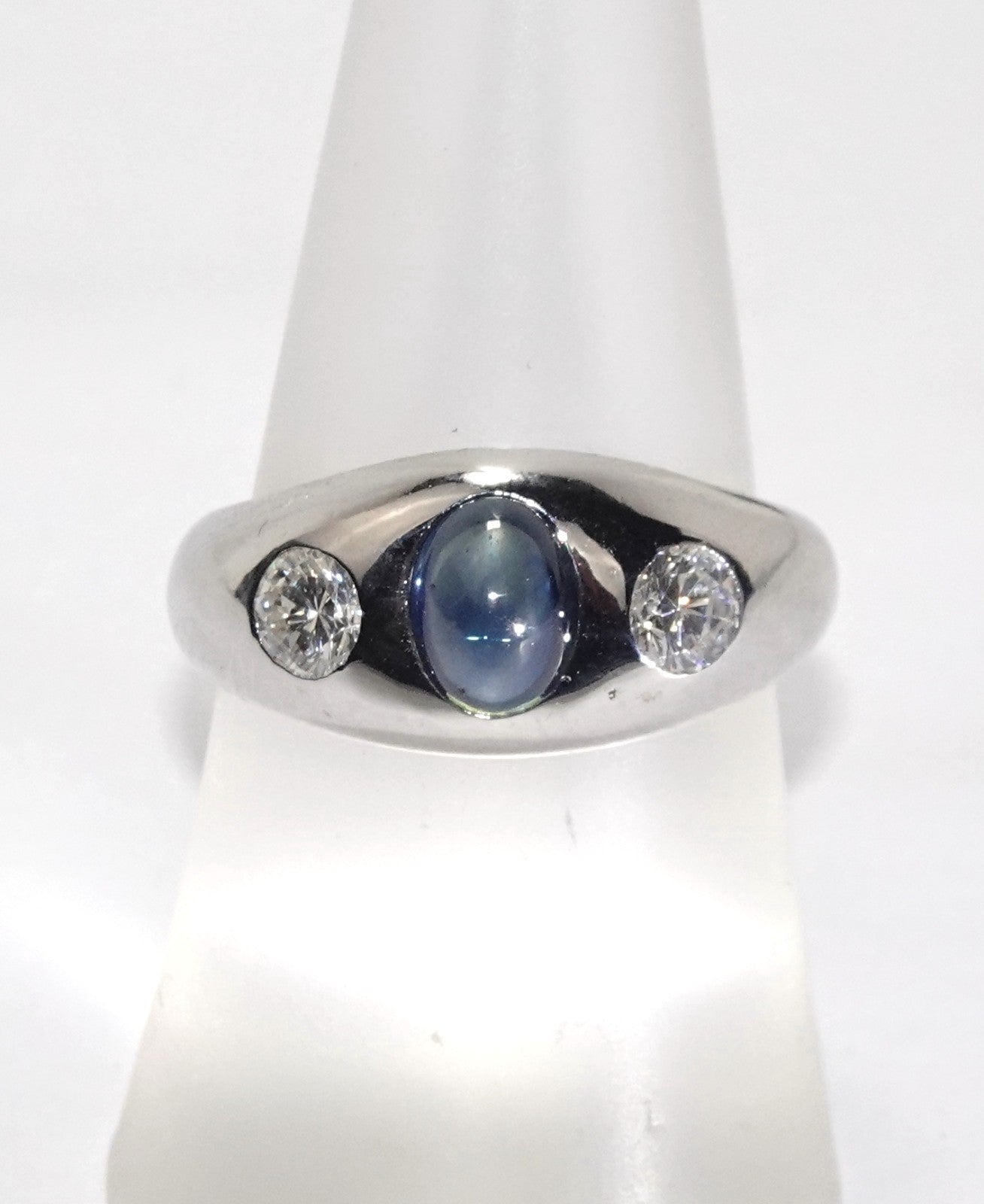 1 Saphir Cabochon oval 1,20 ct. - 2 Diamanten 0,24 ct.