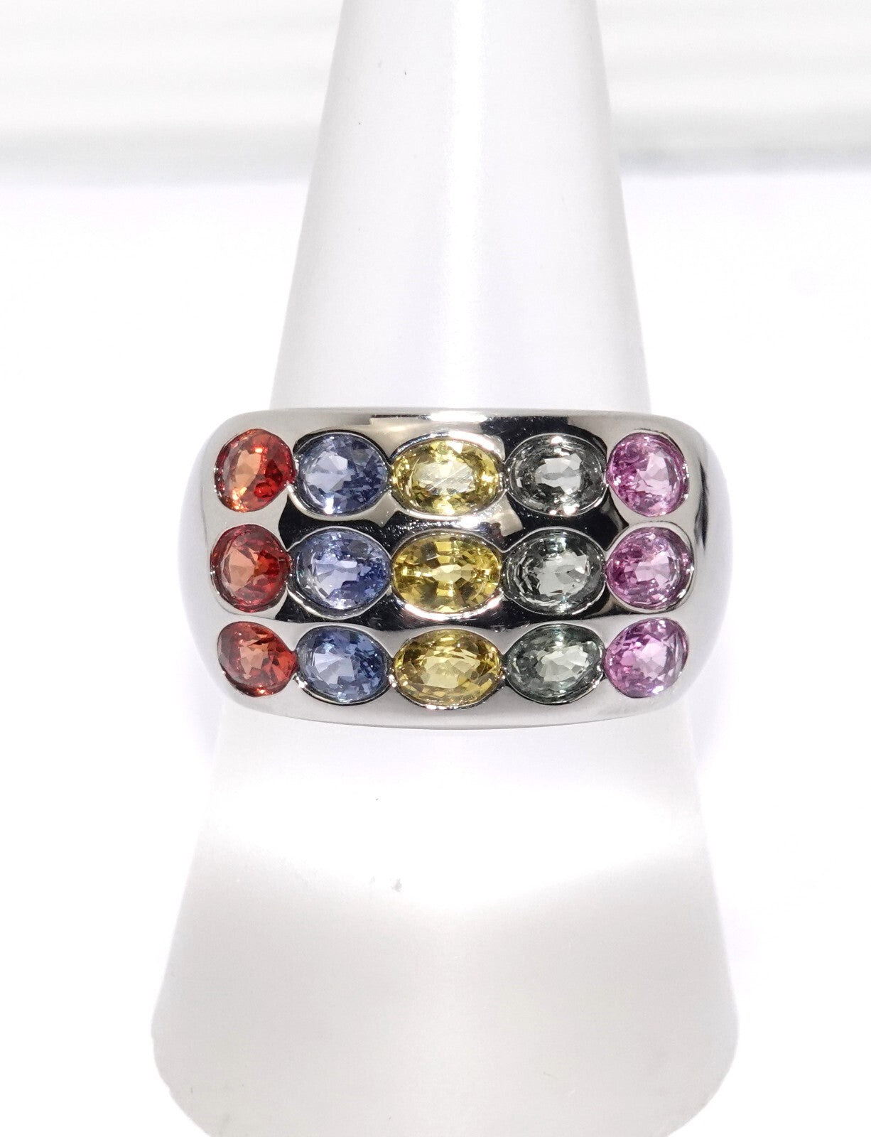 Ring Platin Saphire 5-farbig 3,0ct. Rainbow Sognidoro Gr.56/17,8mm änderbar 6,8g