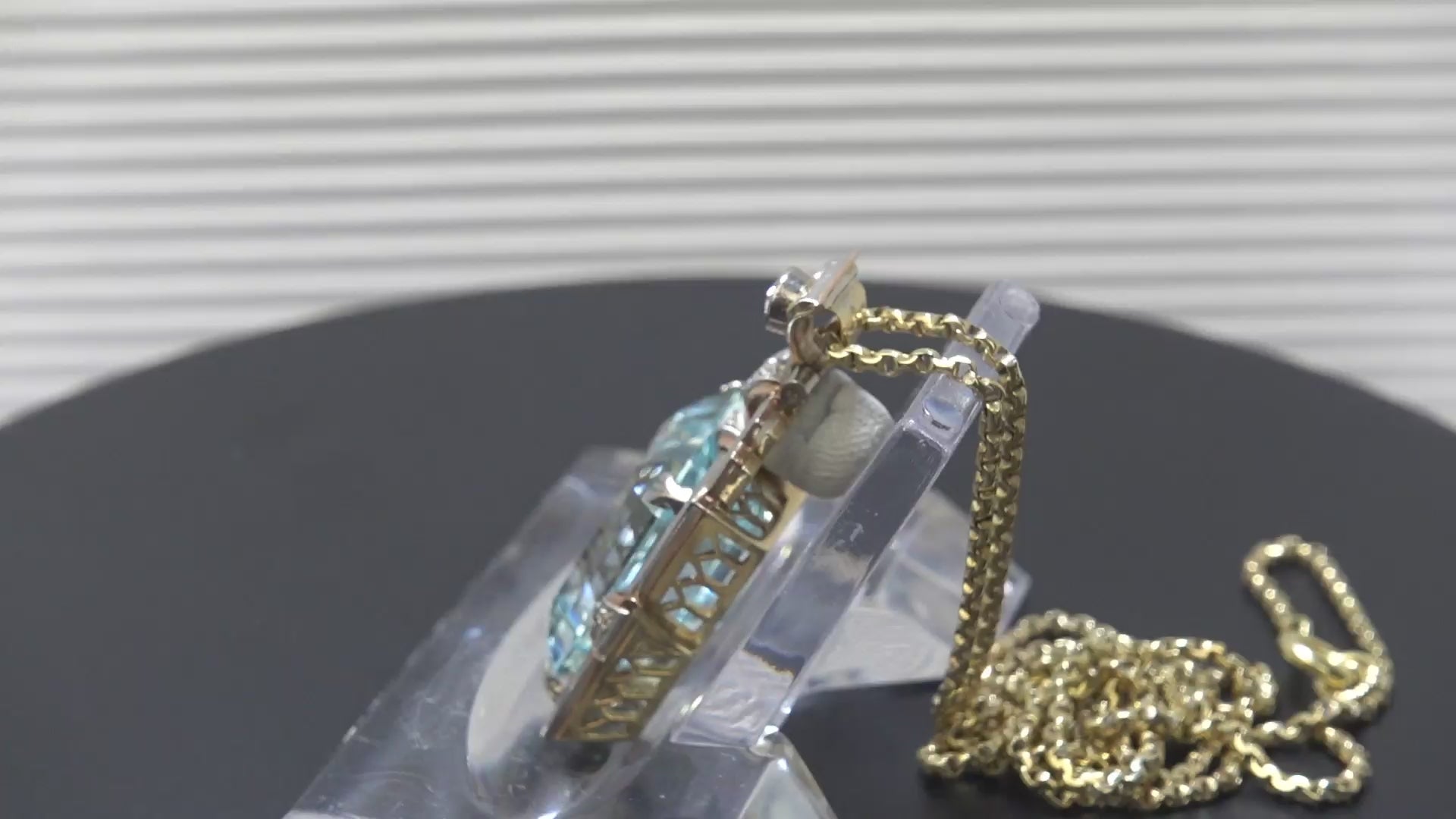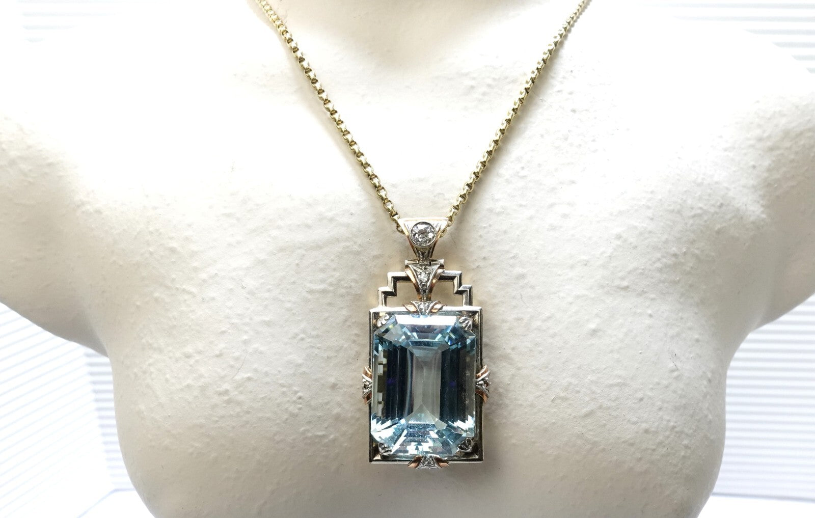 Anhänger Artdeco Aquamarin 20,0ct. Diam. 0,18ct. 585/14K 15,1g Gutachten 2023