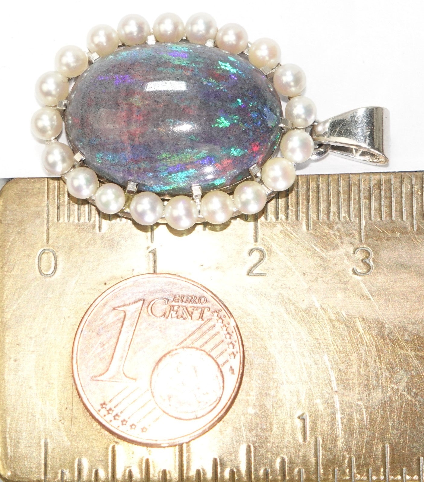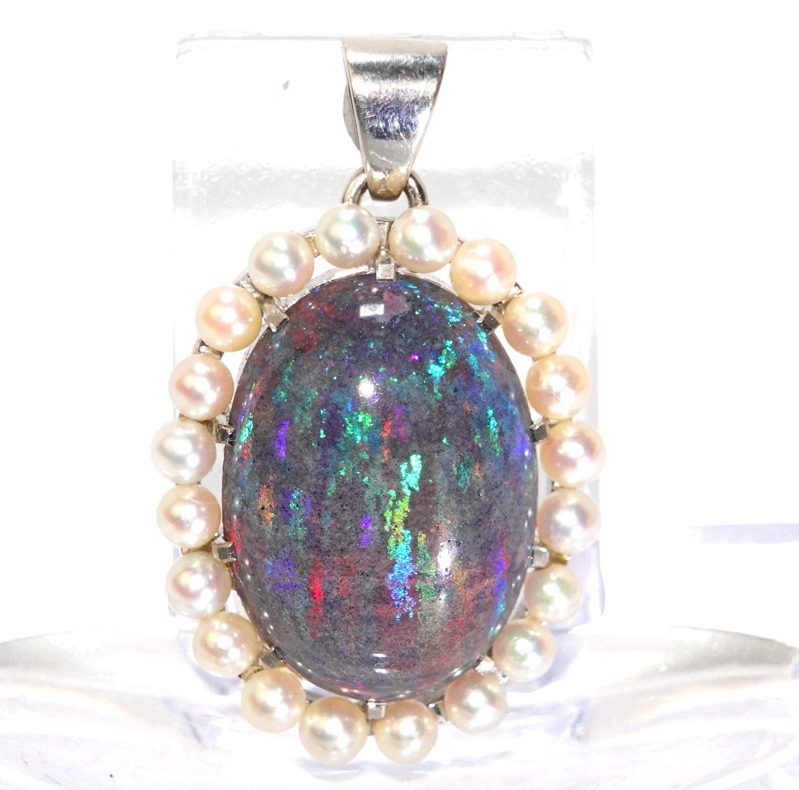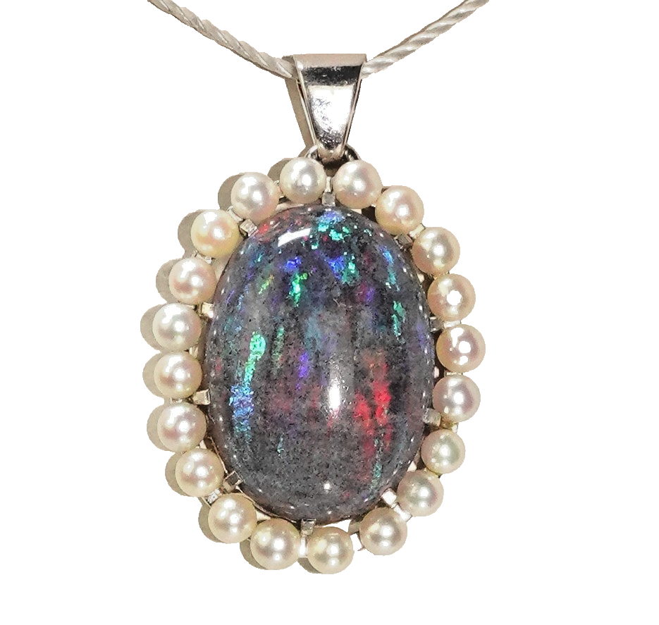 Anhänger Gold Opal 11,0ct. 20 Akoya Perlen 3mm 585/14K 34x21mm