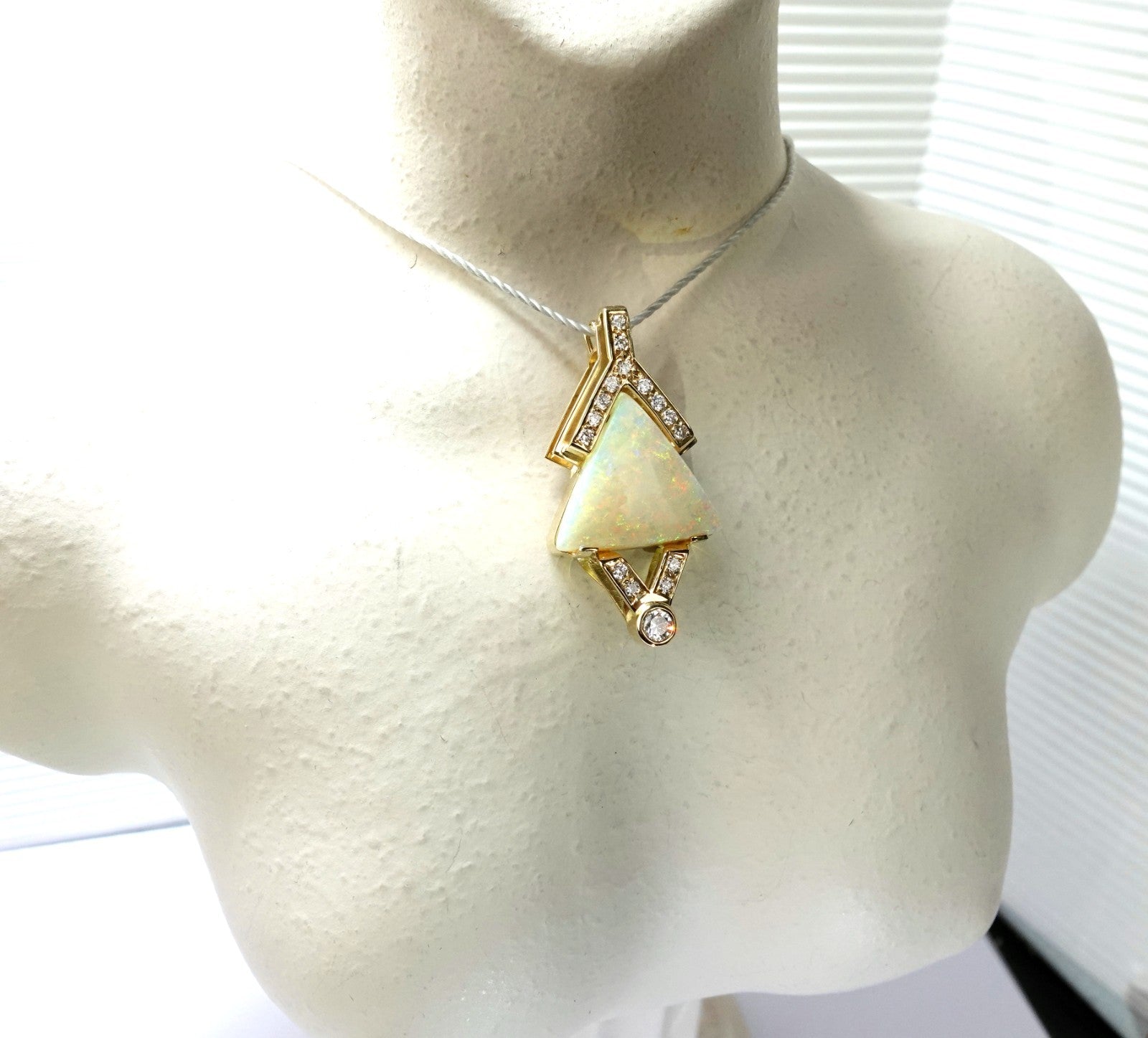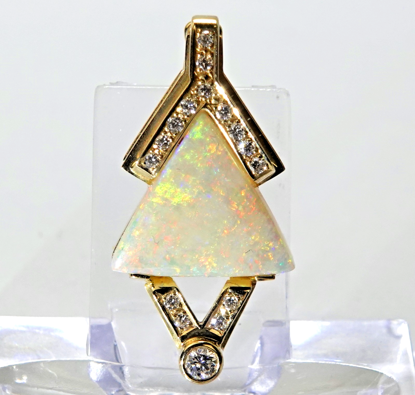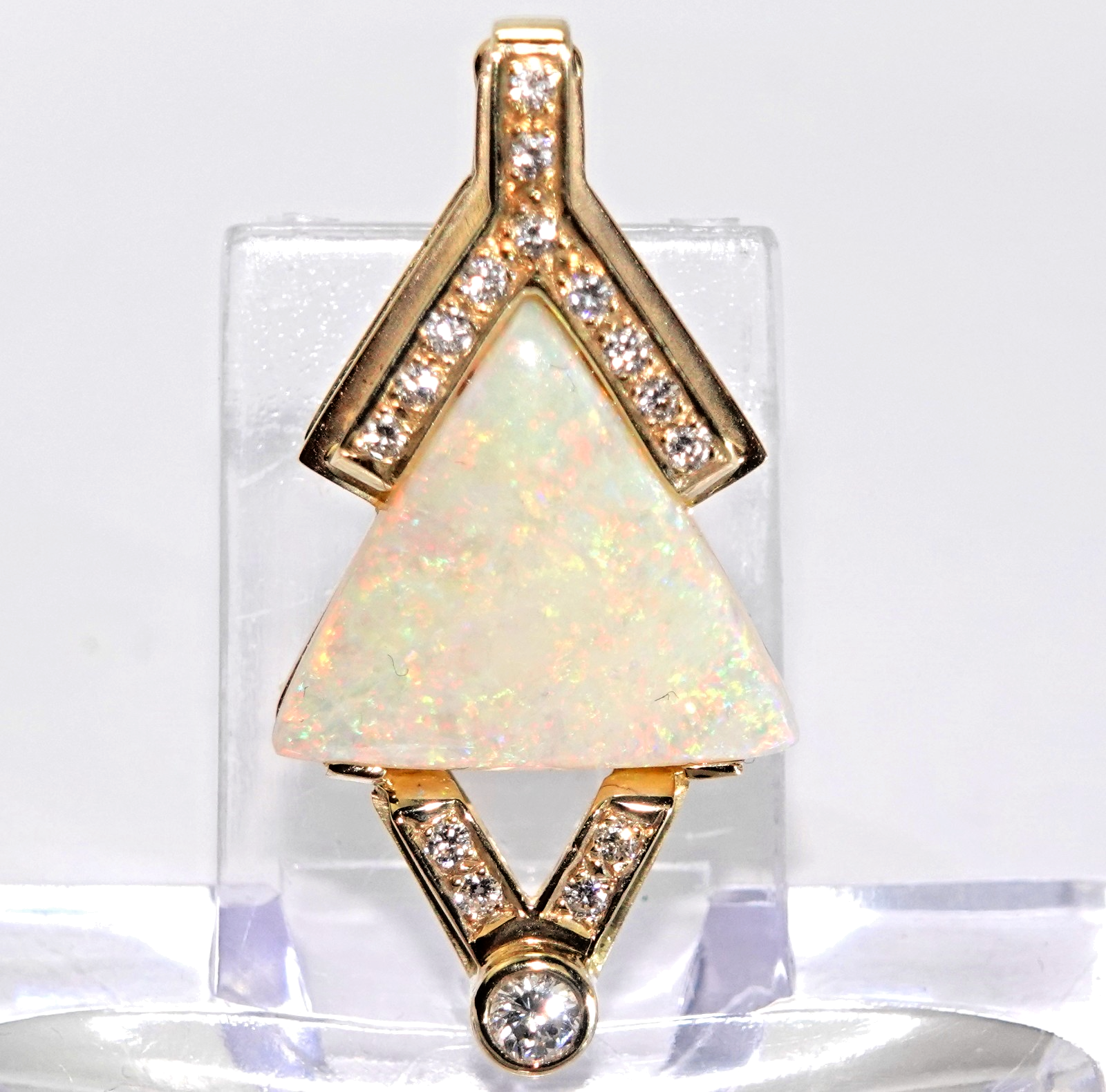Anhänger Gold Opal 4,6c austral. Vollopal 15 Diamanten 0,50c 585/14K 36x19x9mm