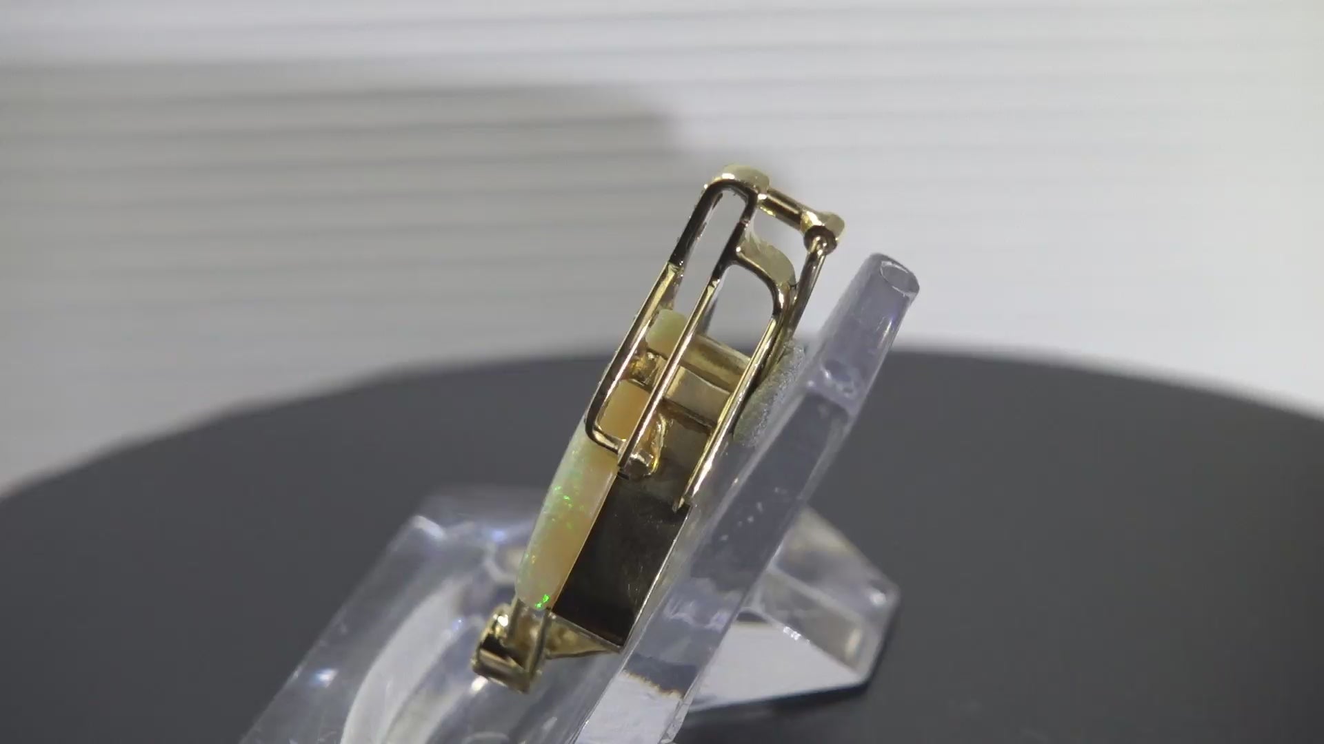 Die Oberfläche dieses Ausnahmeopals ist leicht gewölbt. Das Pinfire ist sehr fein differenziert in allen Regenbogen-Farben. Der Opal ist makellos ohne Cracks, Crazing oder Chips.