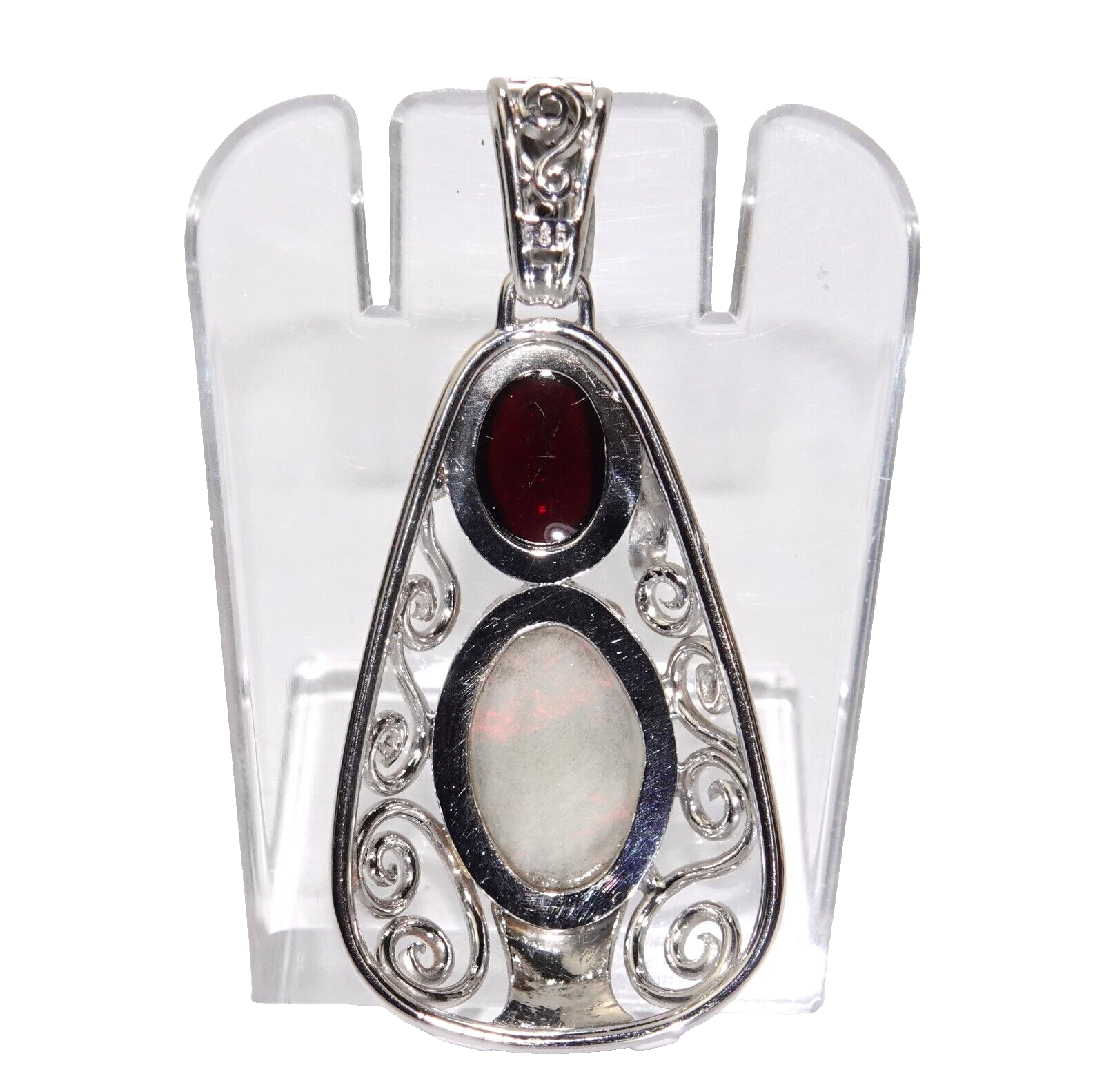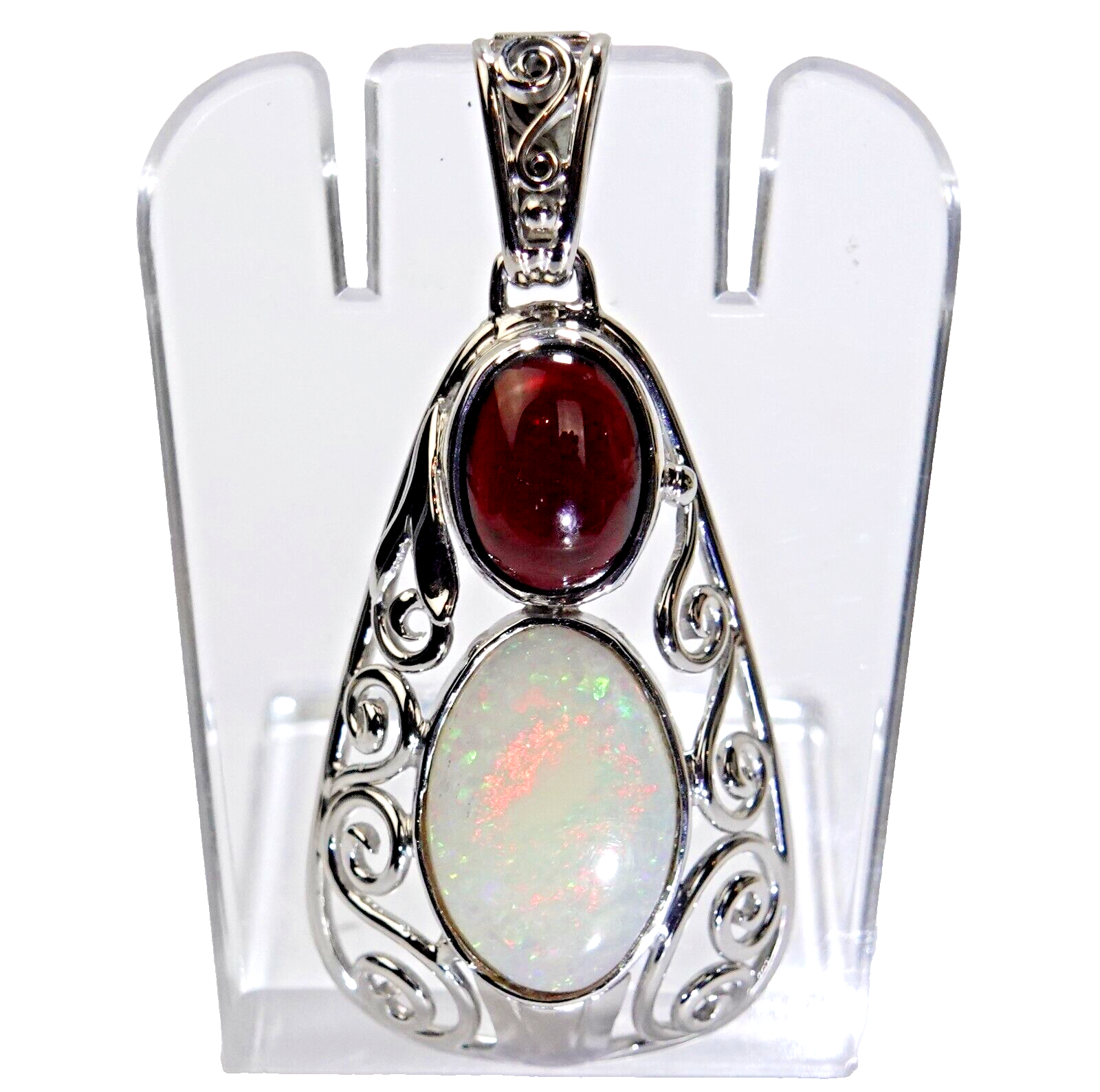 Anhänger Gold Opal 5,2ct.+Granat 4,90 ct. Weißgold 585/14K 51x24mm 10g