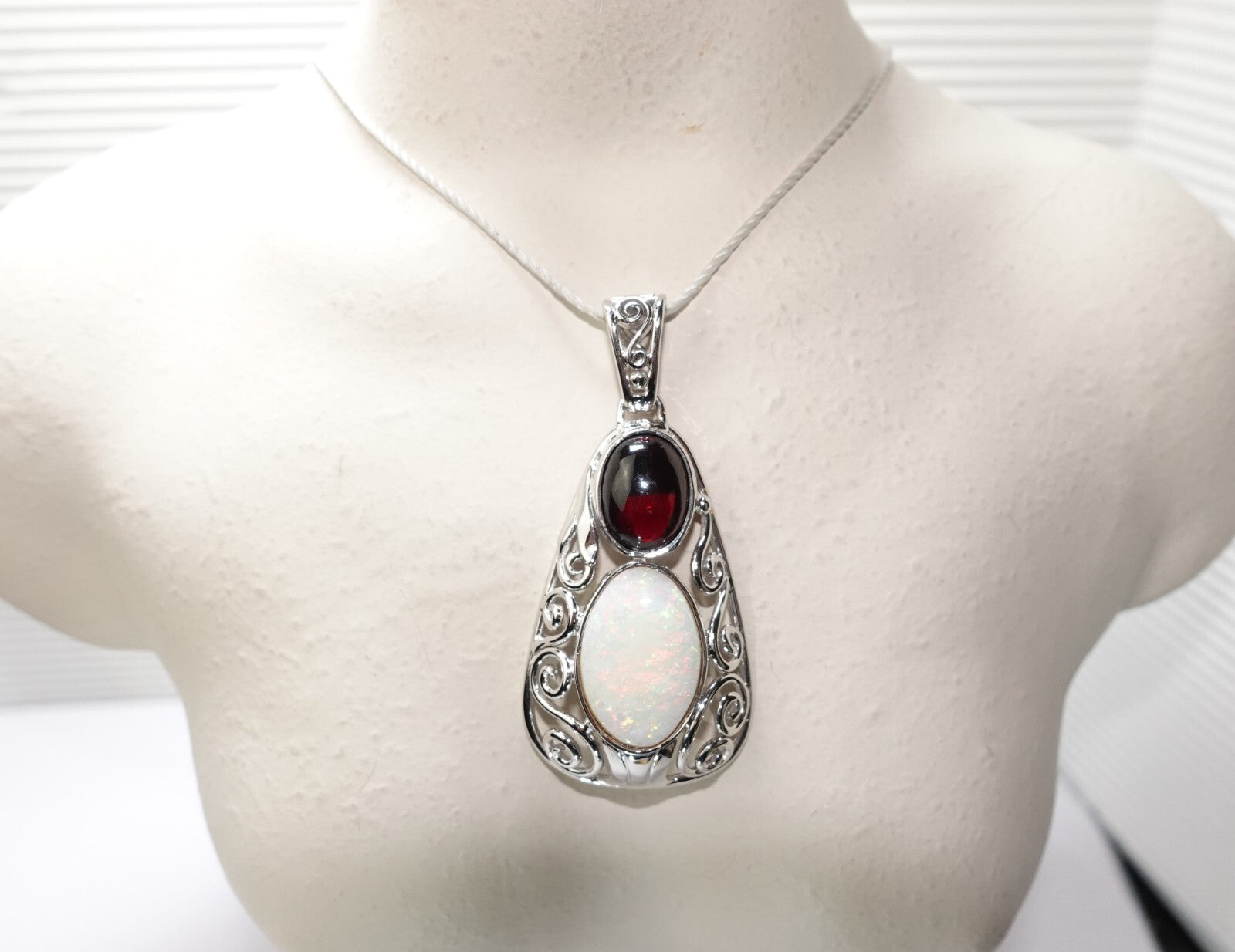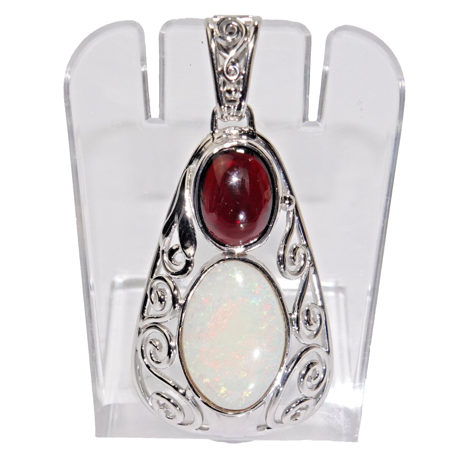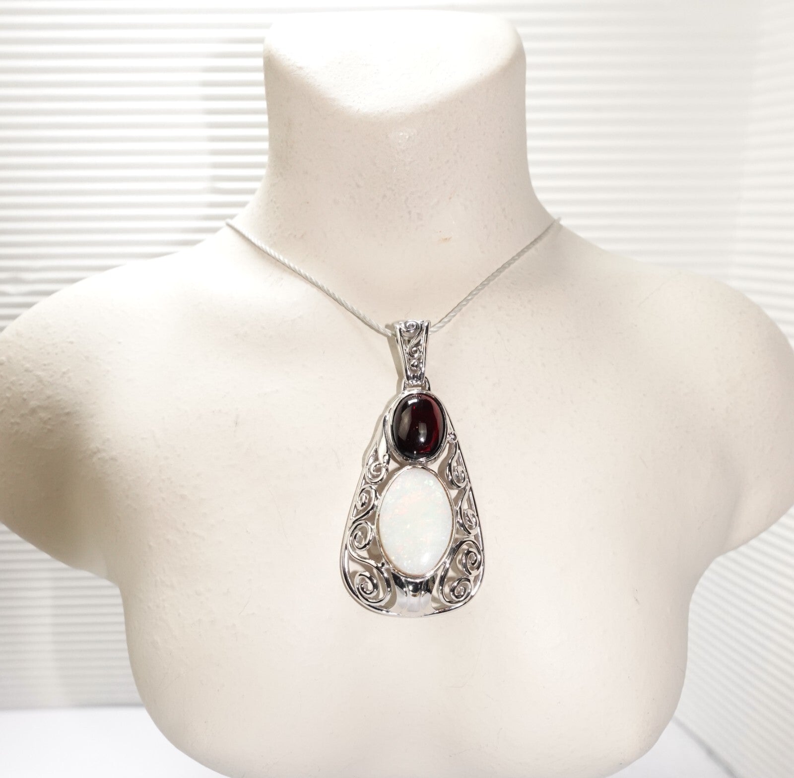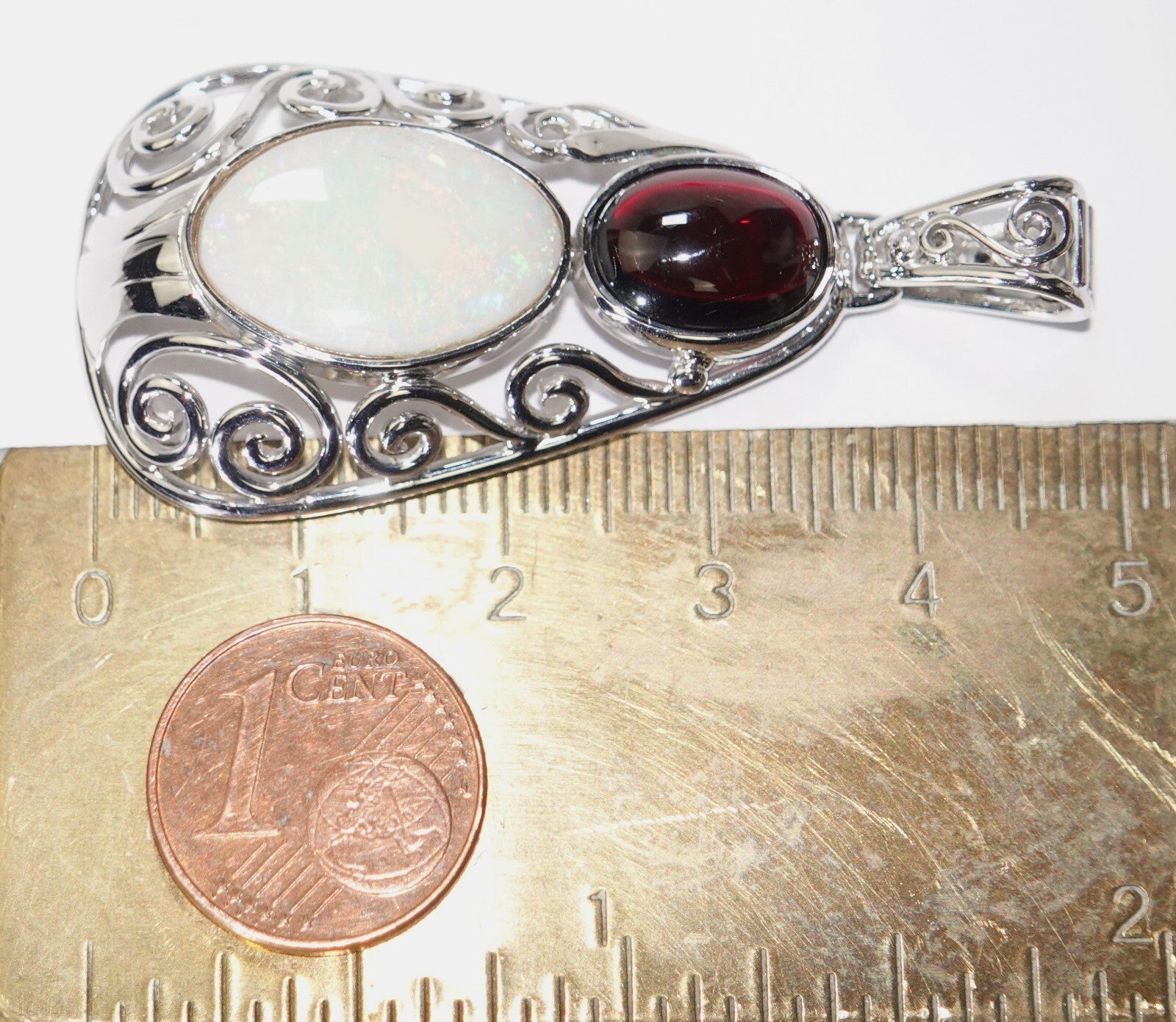 Opal/Granat-Anhänger in 585/14K Weißgold