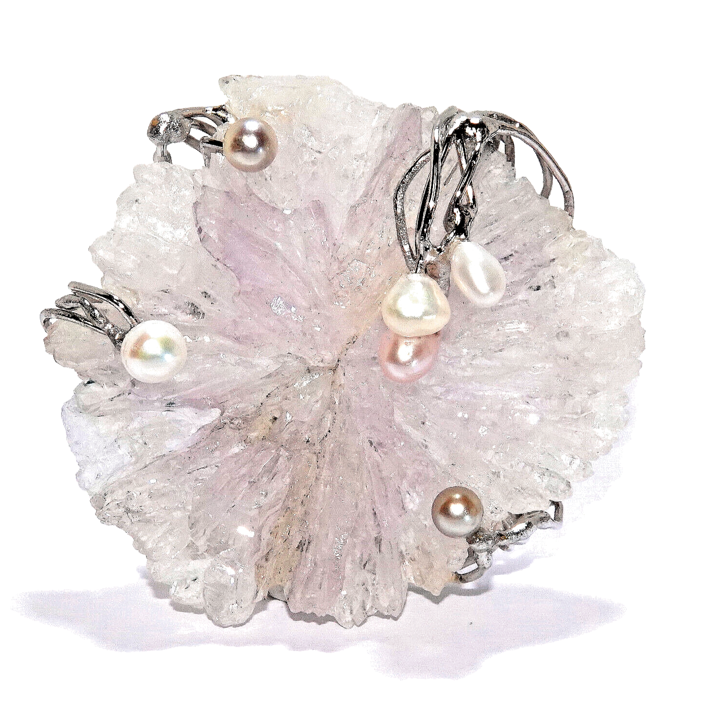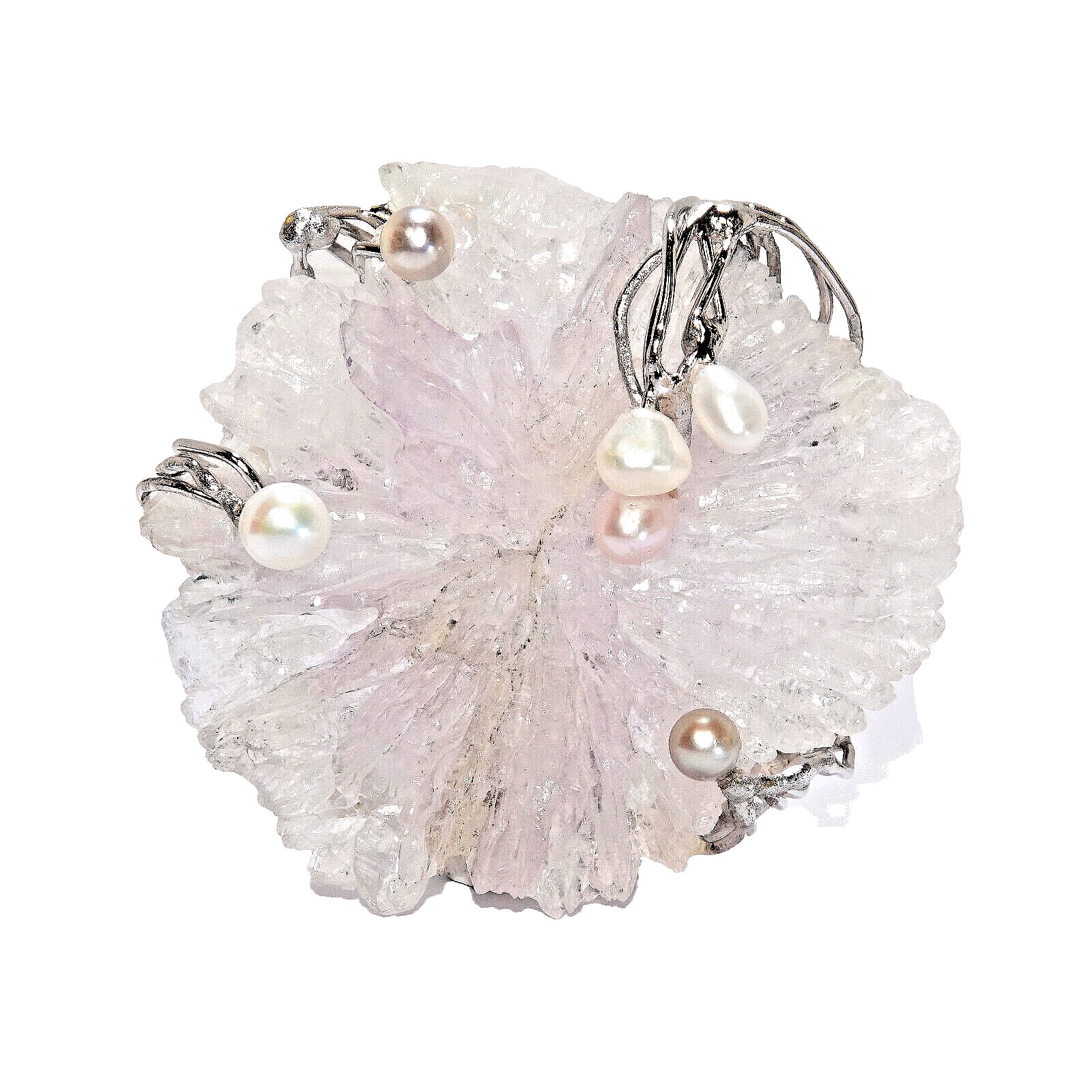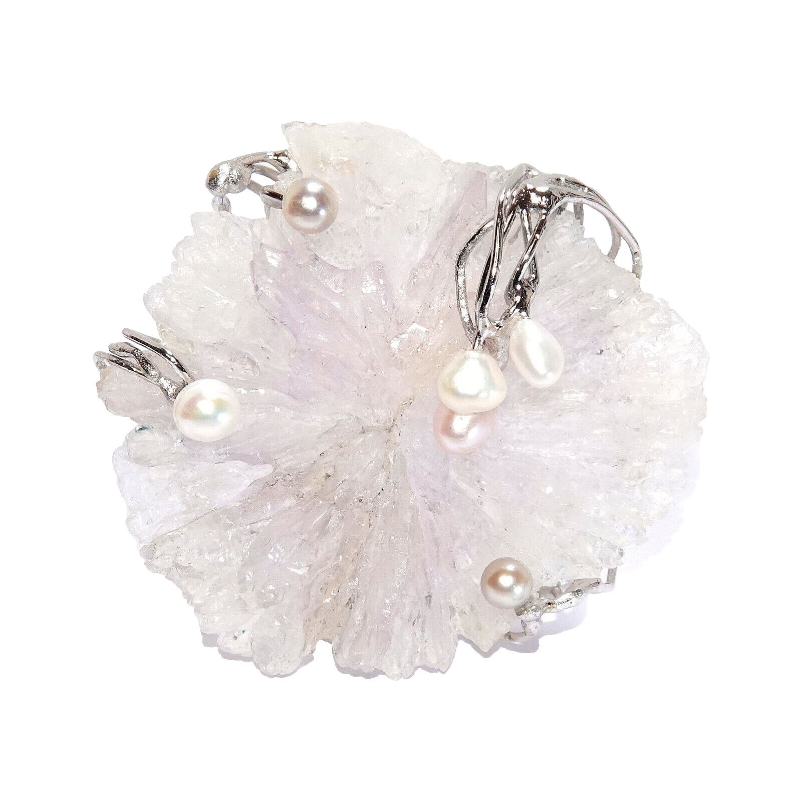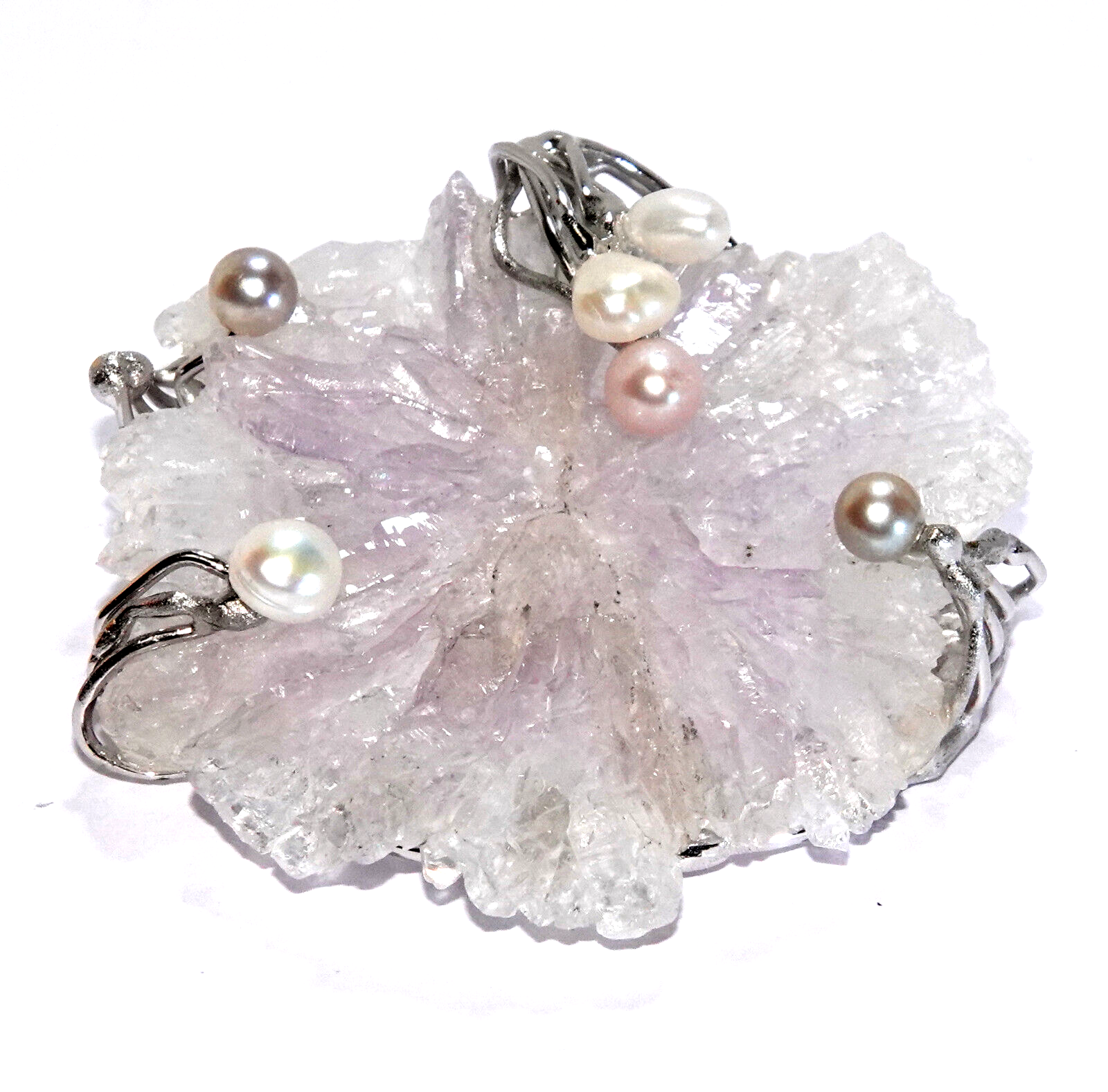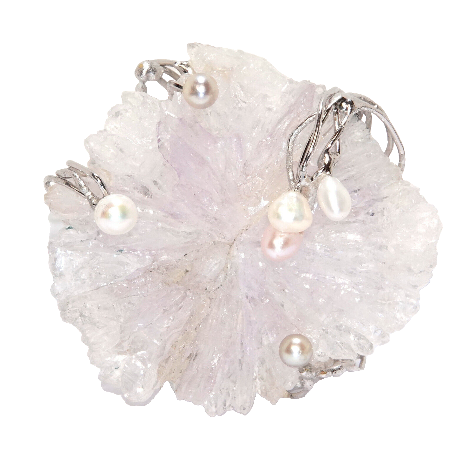 Natürliche Amethyst-Rose 103 Karat + 6 Perlen.