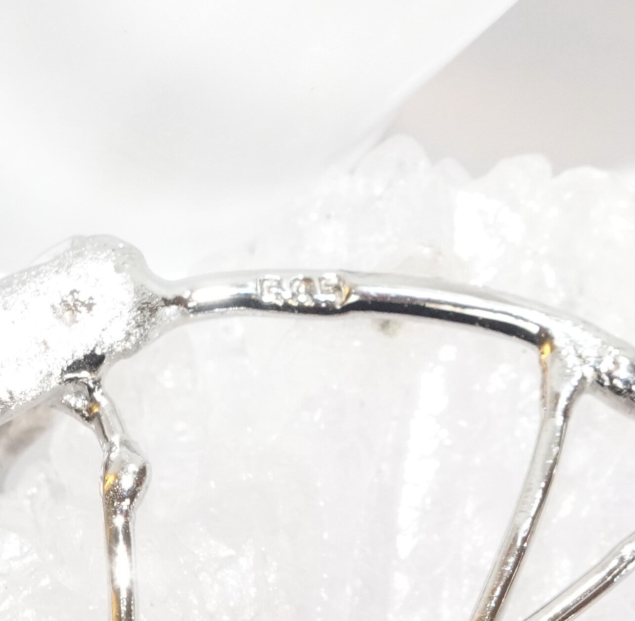 von ca. 55 mm Durchmesser, die von überlappenden Weißgold-Drähten gefasst ist,