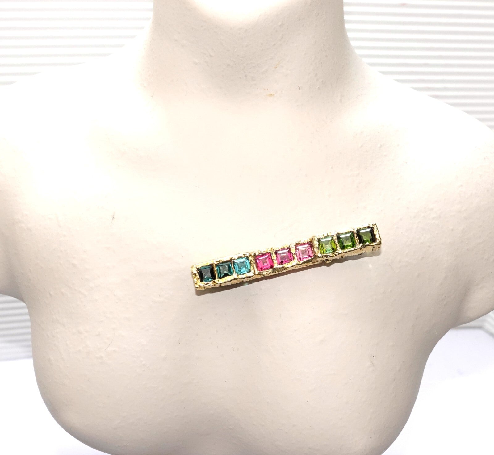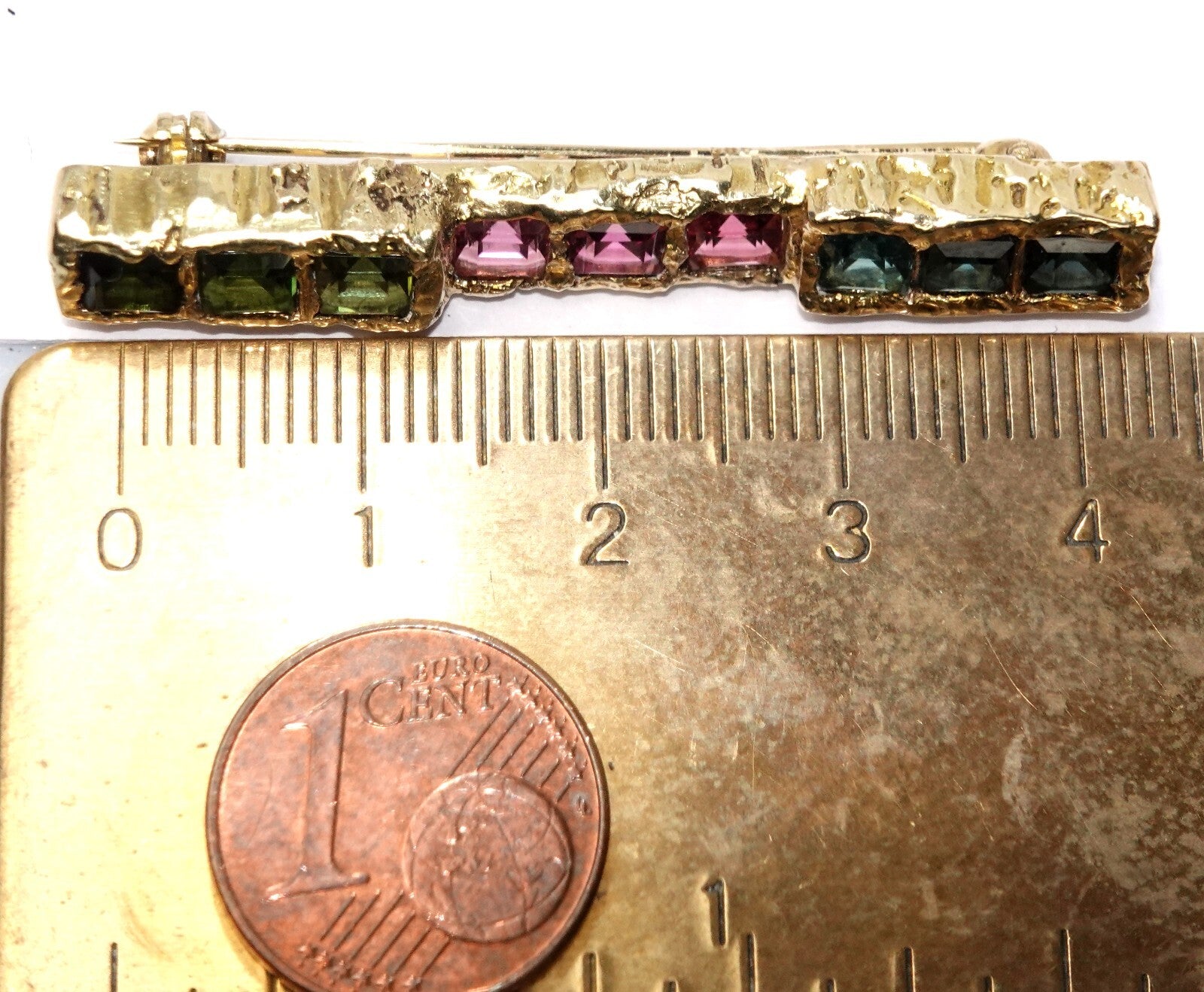 Brosche Gold Turmalin farbig 1,80 ct. Regenbogen 585/14K 5,5x6,4 mm
