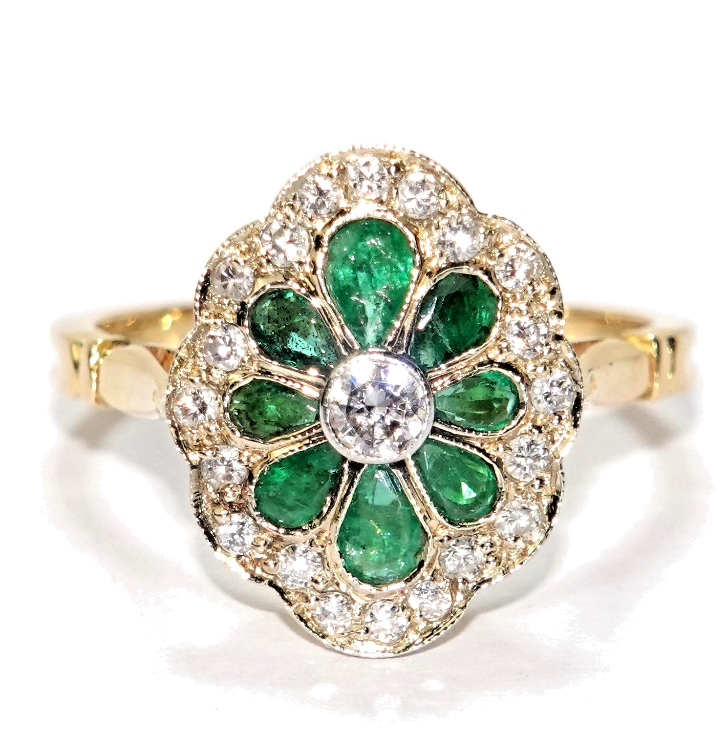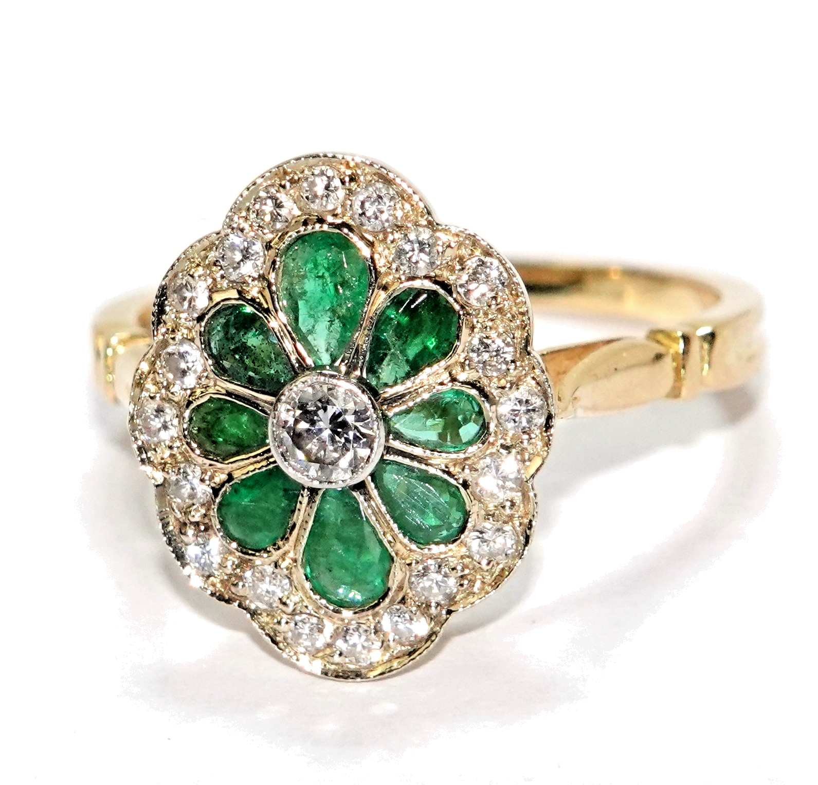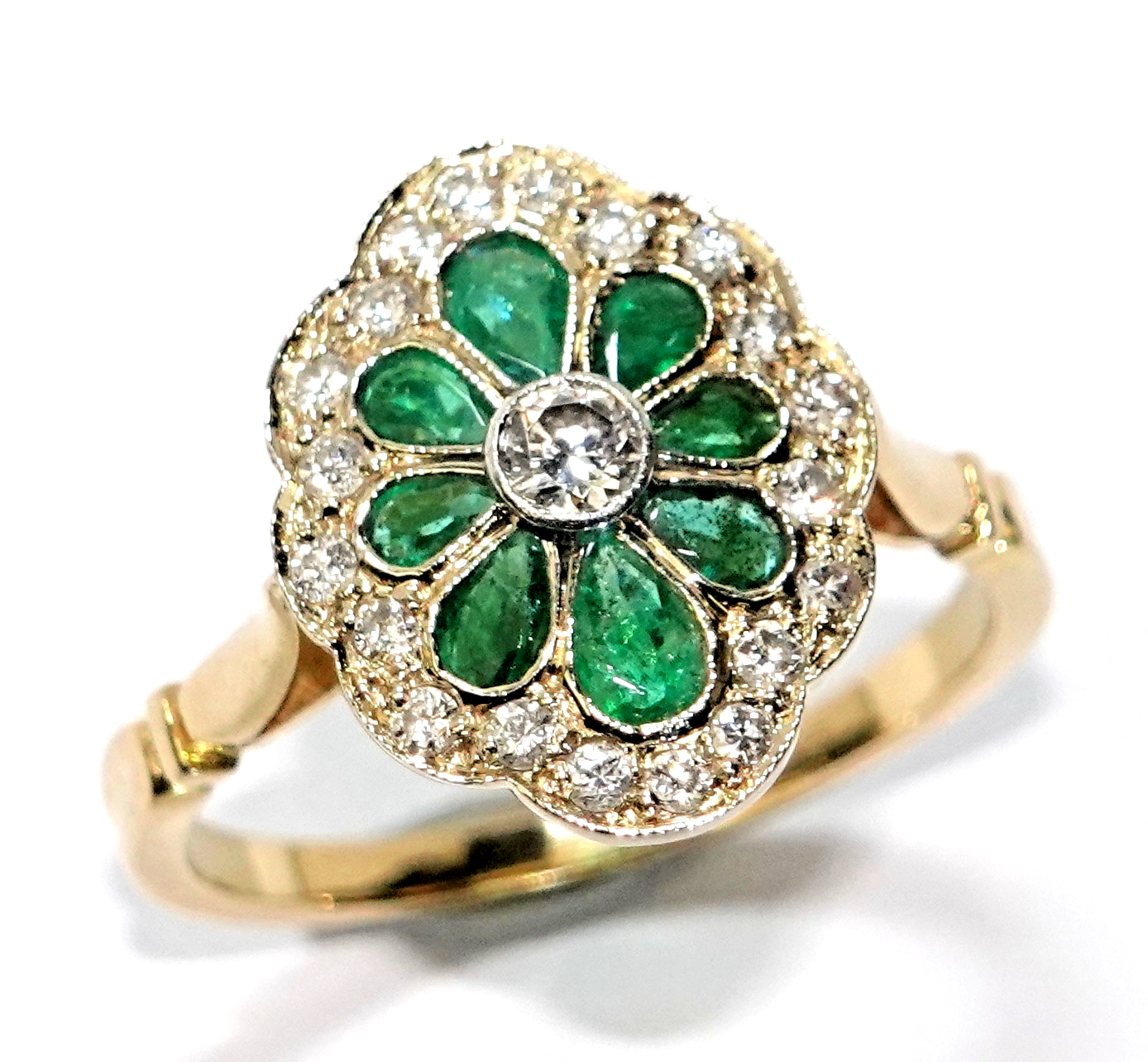 Ring Smaragd Diamant 047c Smaragd 0,44 750/18K antik Gr.57/18,2mm änderbar