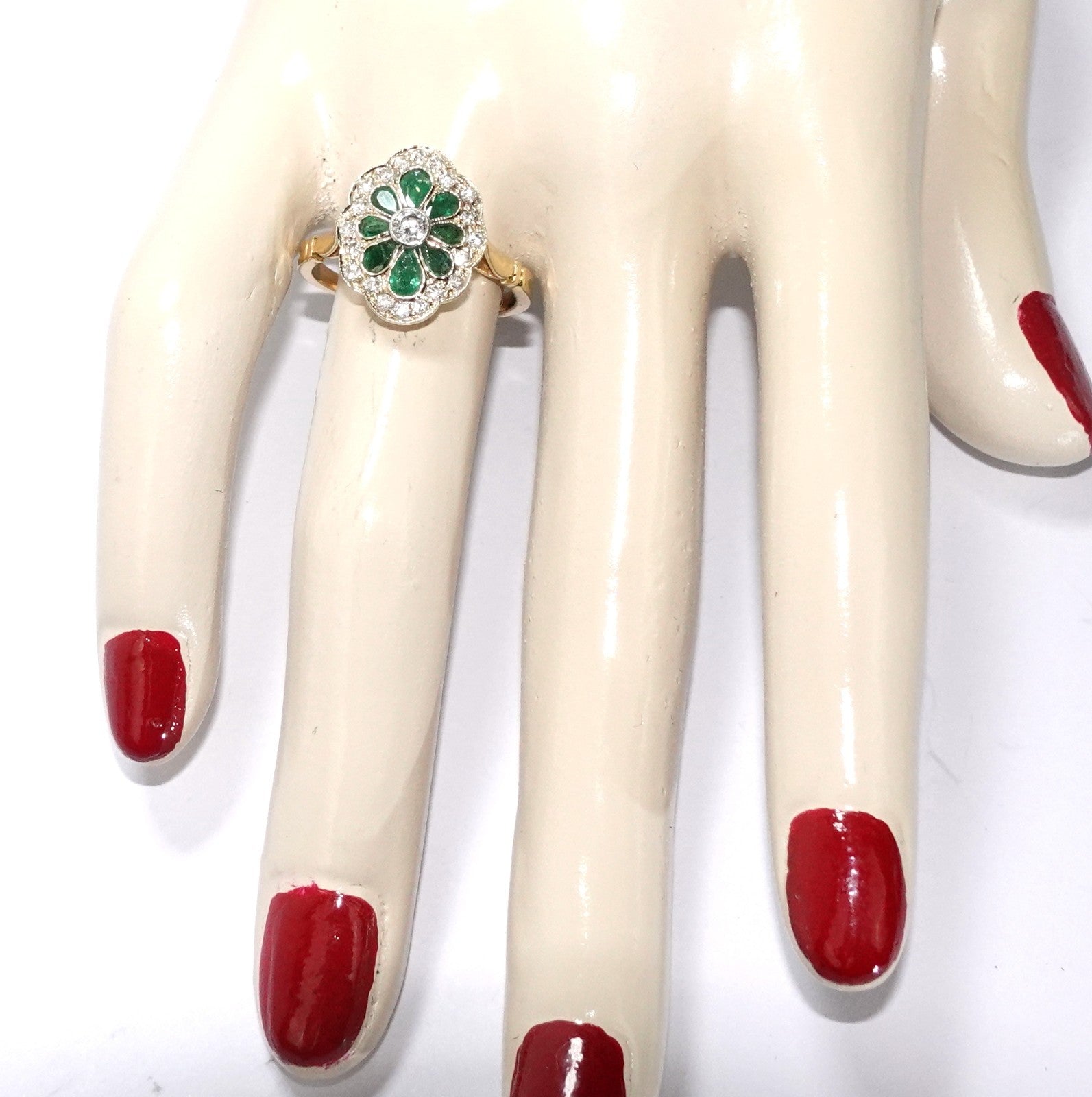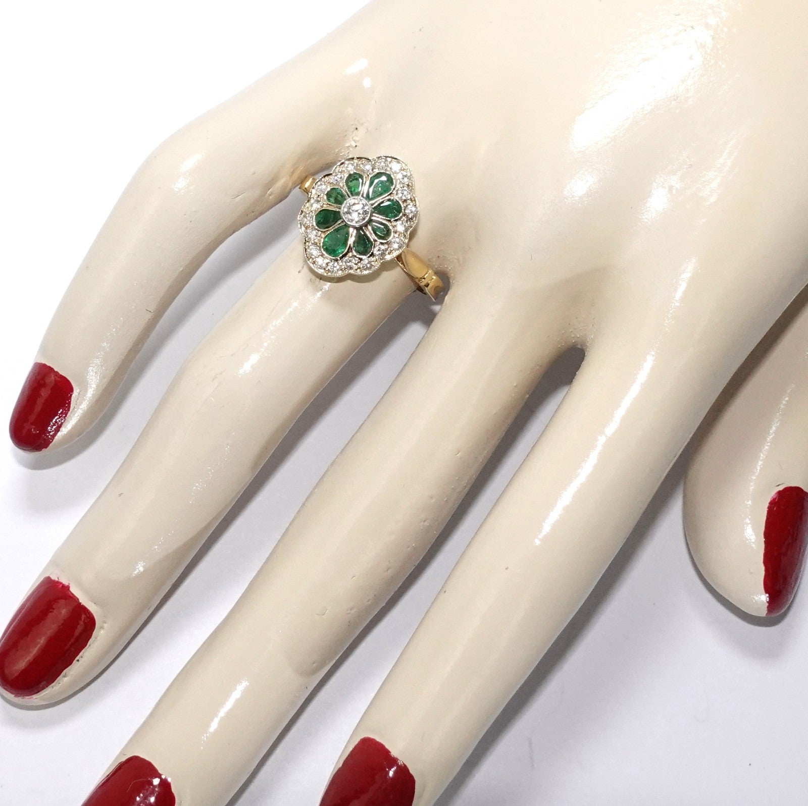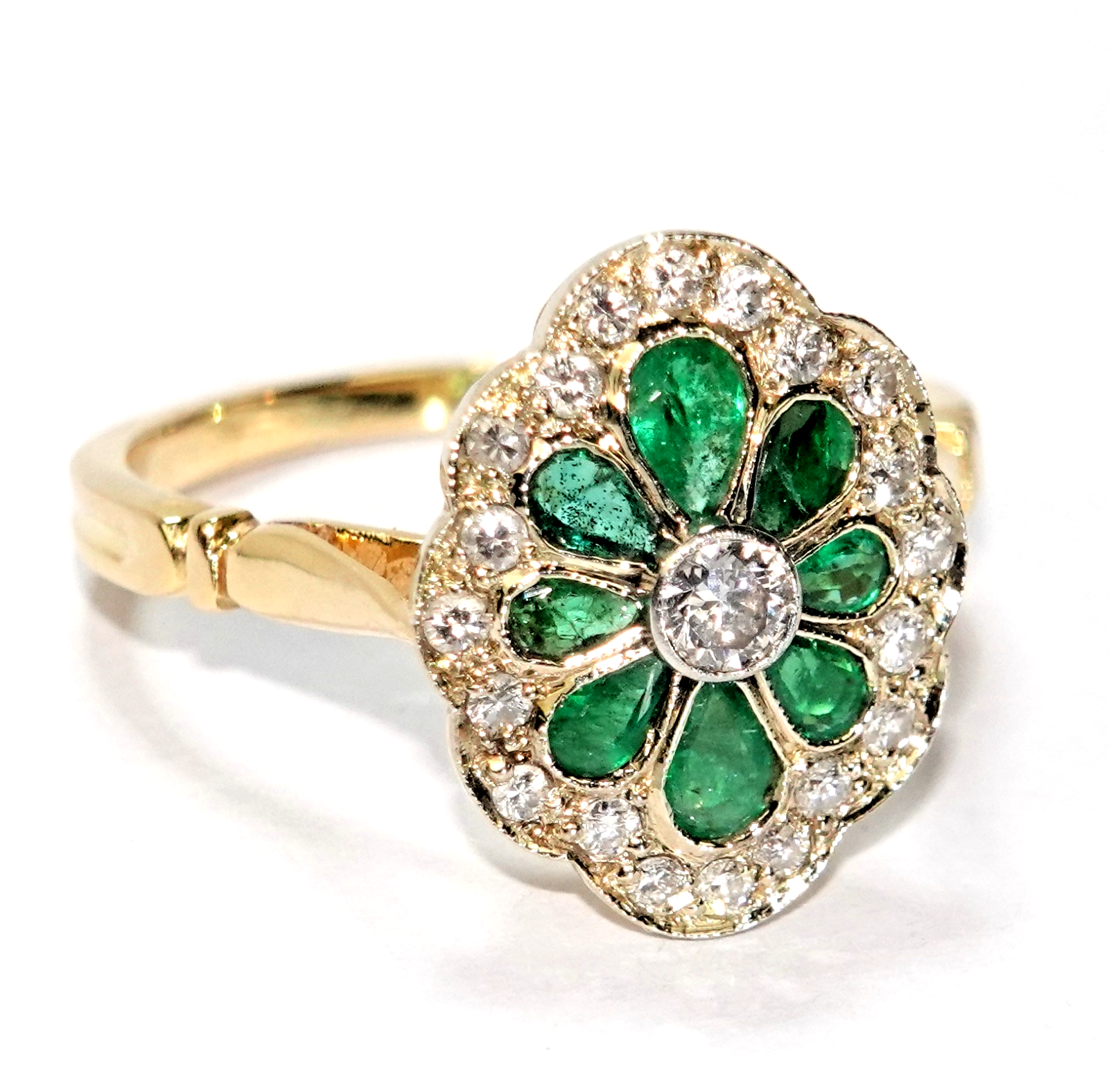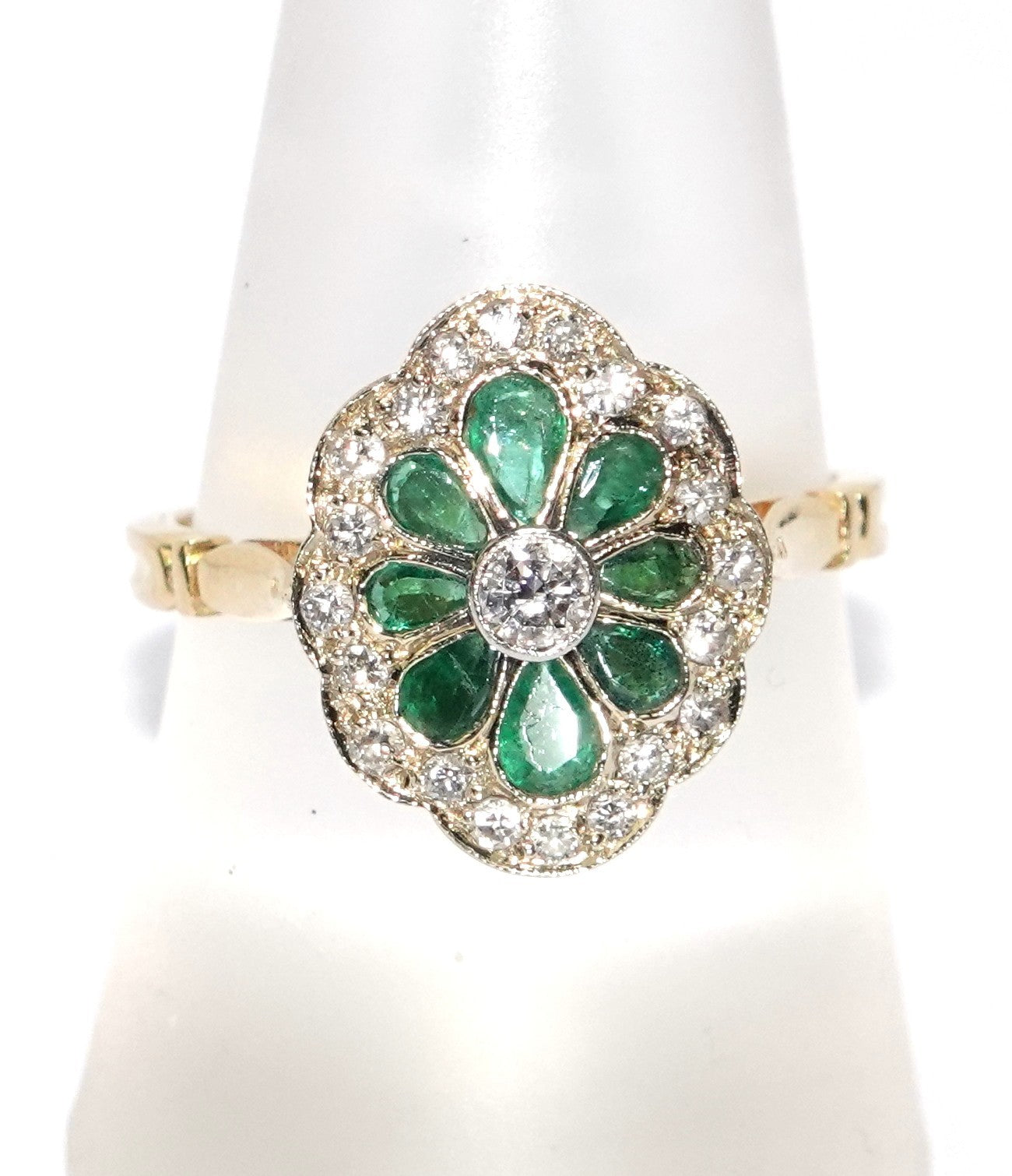 Ring Smaragd Diamant 047c Smaragd 0,44 750/18K antik Gr.57/18,2mm änderbar